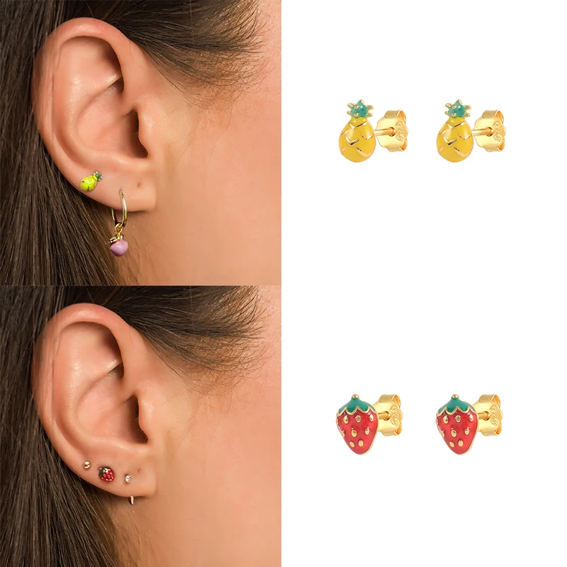 [Тип товара]: милые серьги-гвоздики с эмалью и фруктами