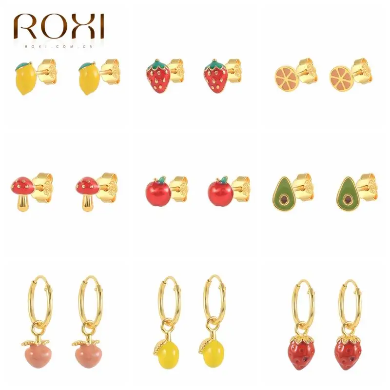 Женские серьги-гвоздики с эмалью и фруктами ROXI, 925 пробы, серебро, оранжевый ананас, манго, клубника, Paneveri, серьги в форме грибных гроздей, ювелирные изделия