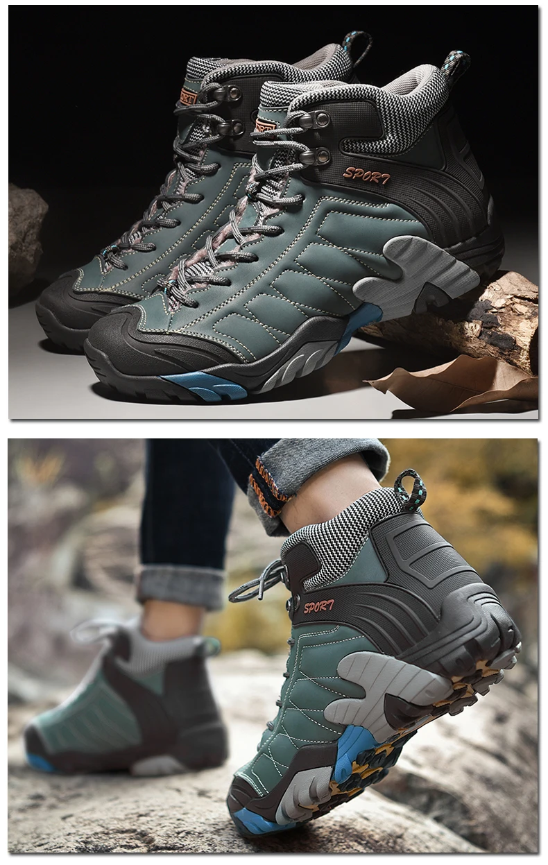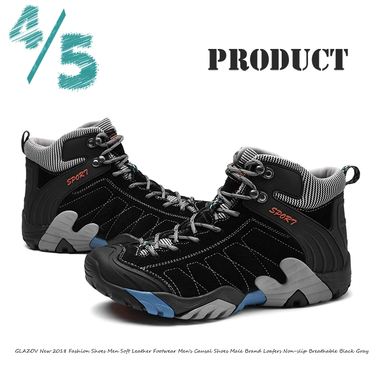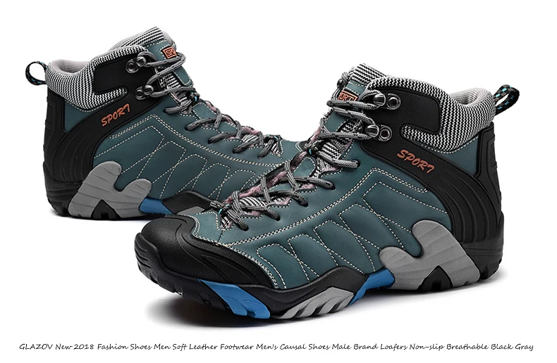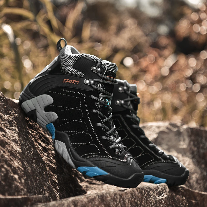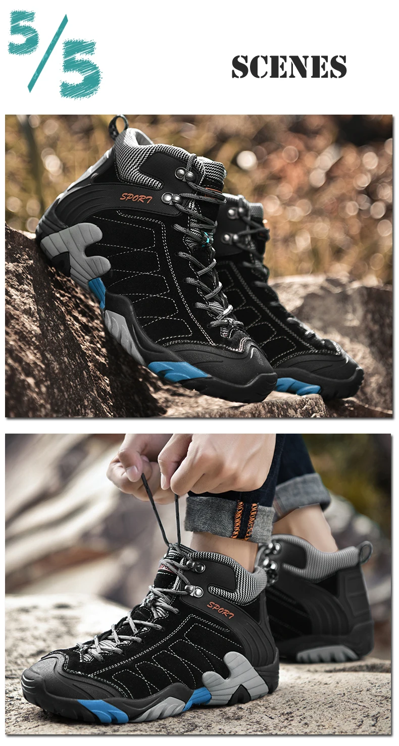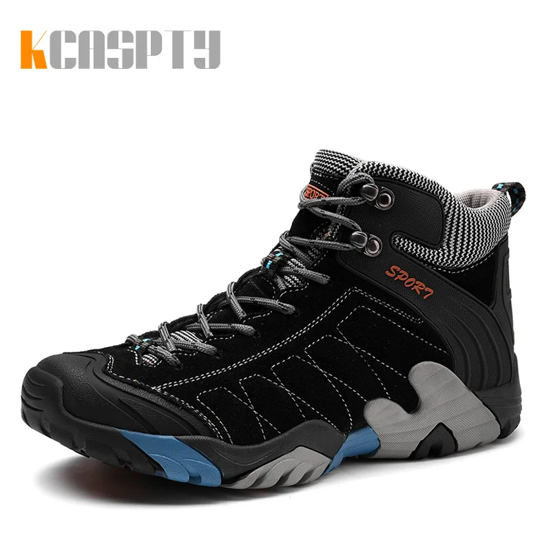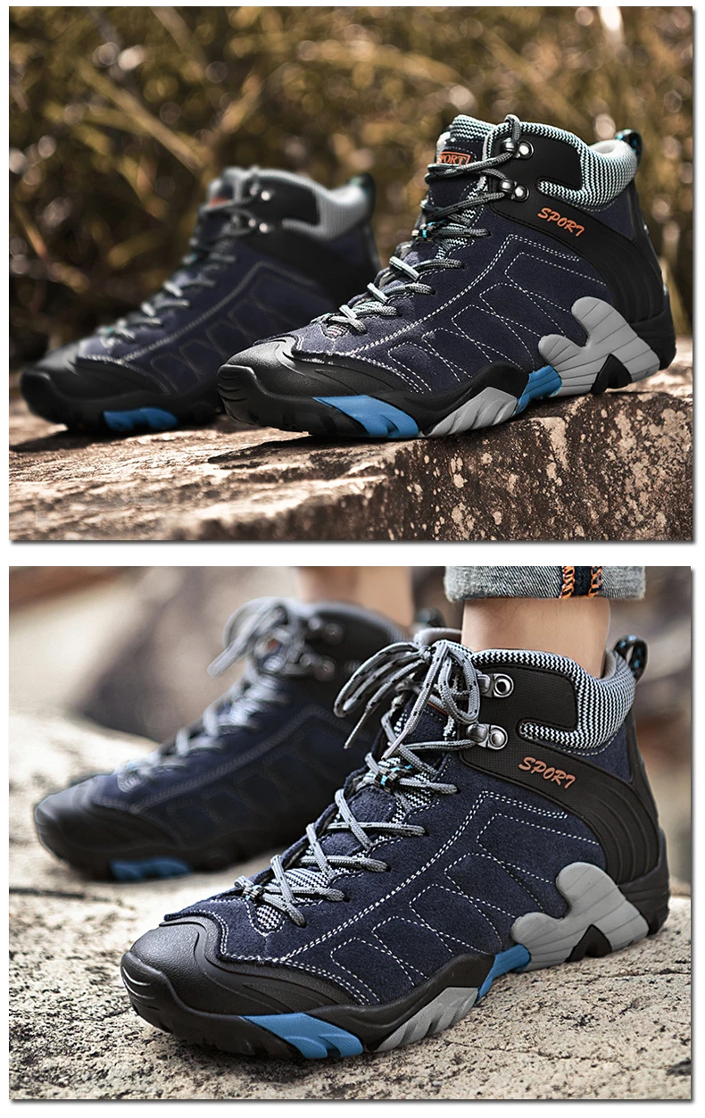 Мужские кожаные походные ботинки, Нескользящие, для улицы, скалолазание, синие, обувь для пешего туризма