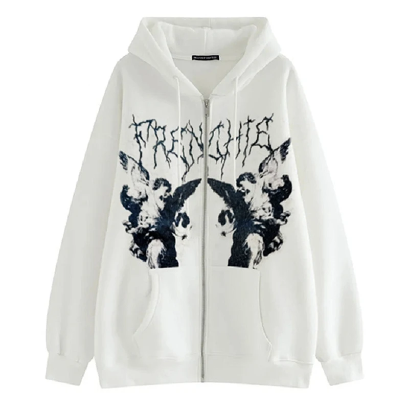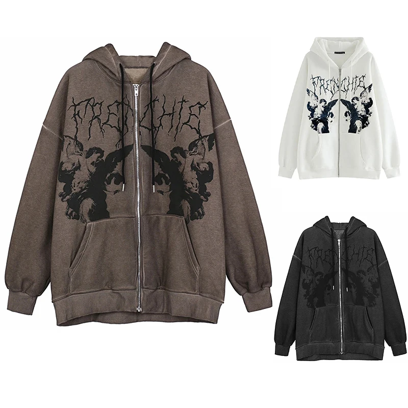 Новая тёмная куртка, пальто, женские толстовки с принтом сказочного ангела, уличная одежда в стиле хип-хоп, женское аниме пальто в стиле Харадзюку на молнии, женская одежда