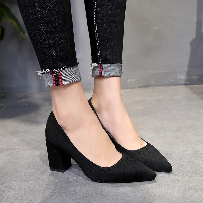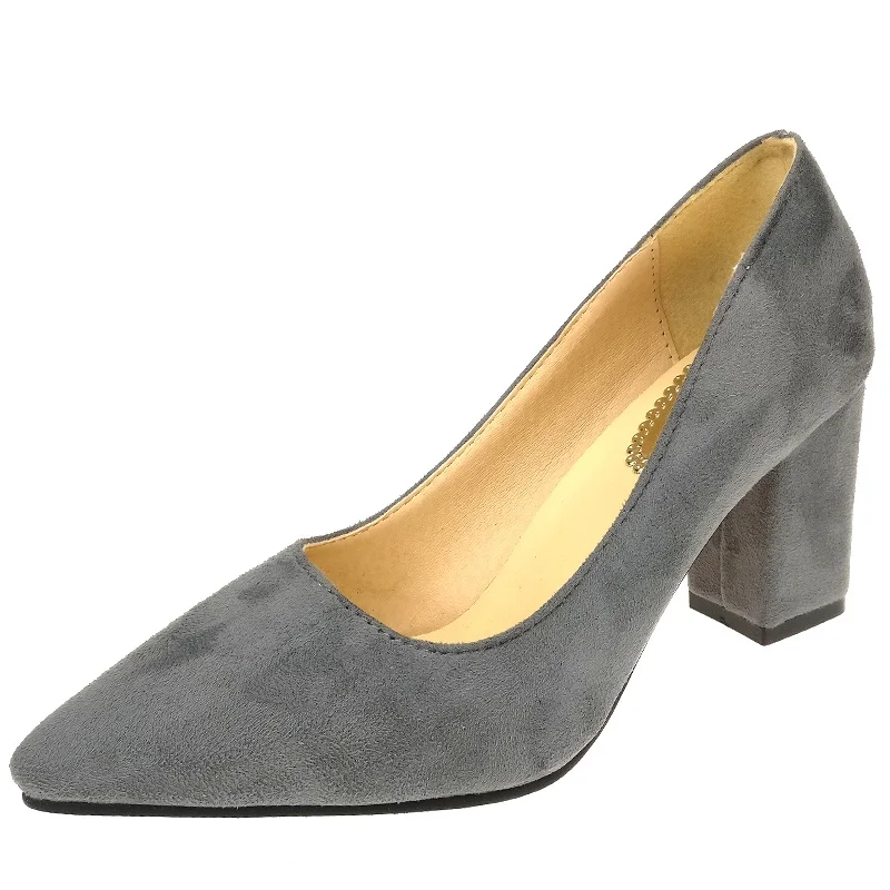 Туфли-лодочки женские на квадратном каблуке, заостренный носок, из флока, высокий каблук, модные серые, кожаные, вечерние туфли, большие размеры 47 48 50
