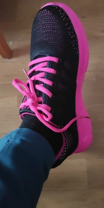 Легкая и удобная обувь, они не двигались после 1 недели ношения 8 часов в день. К минусам слегка скользит, если гладкий пол.