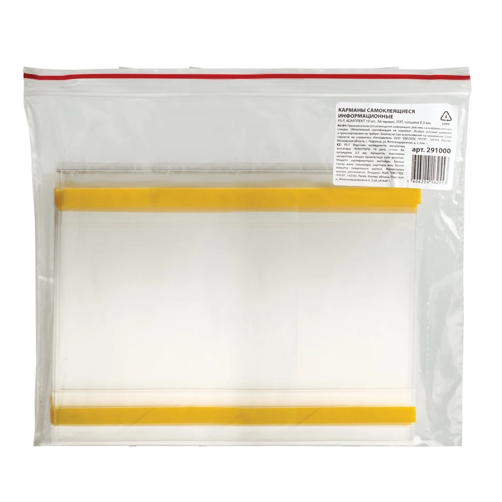 Карманы информационные самоклеящиеся PS-T, горизонтальные, КОМПЛЕКТ 10 шт., ПЭТ, толщина 0,3 мм