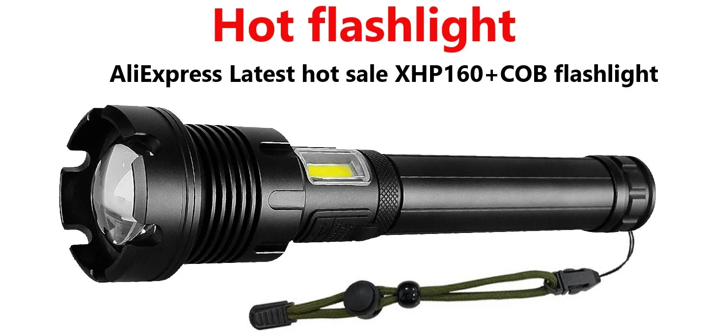 ※ AliExpress 900000 люменов XHP160 + COB супер светодиодный светильник вспышки, срок службы> 100000 часов, это самый мощный и Яркий фитиль в AliExpress, Открытый Сильный светильник может осветить 1500 метров на дальние расстояния, светодиодный светильник с максимальным выходом вспышки составляет 900000 люменов, и яркость выходит за рамки воображения!
