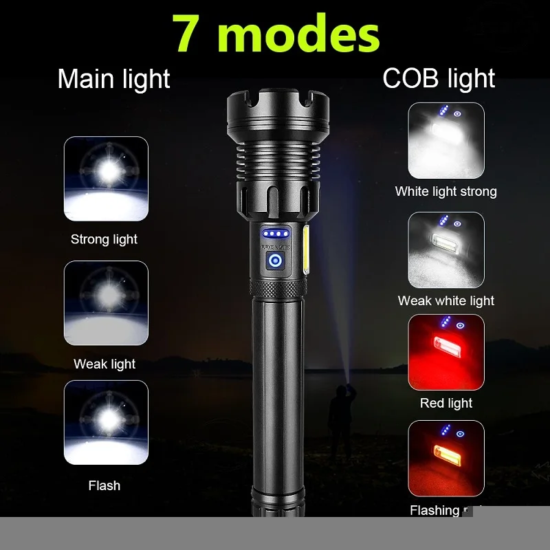 XHP160 + COB фонарик• Название: супер мощный фонарик XHP160 + COB• Модель светодиодный бусины: XHP160 + COB• Диапазон: 1500 метров