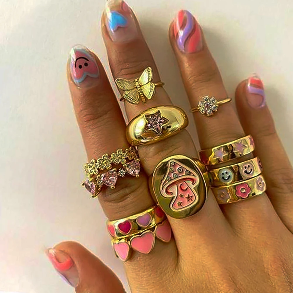 Кольцо женское эмалированное, с рисунком в виде гриба, Y2K, 2021