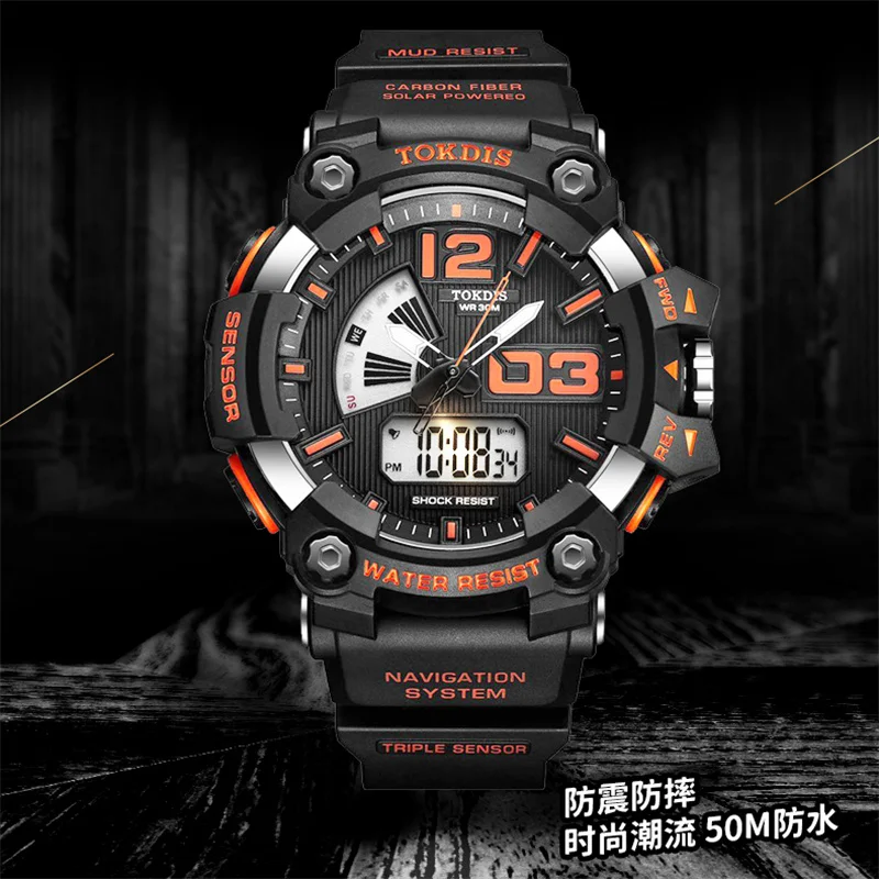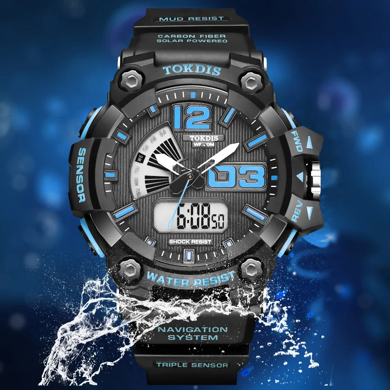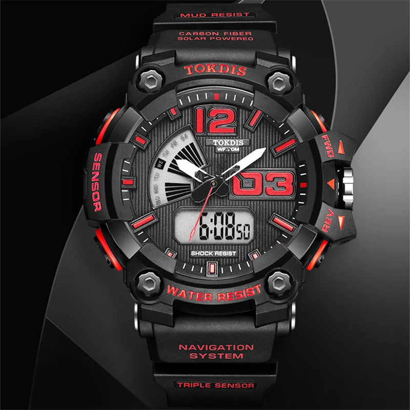 Мужские военные водонепроницаемые часы TOKDIS, 50 м, светодиодсветодиодный многофункциональные японские импортные кварцевые спортивные часы, мужские часы