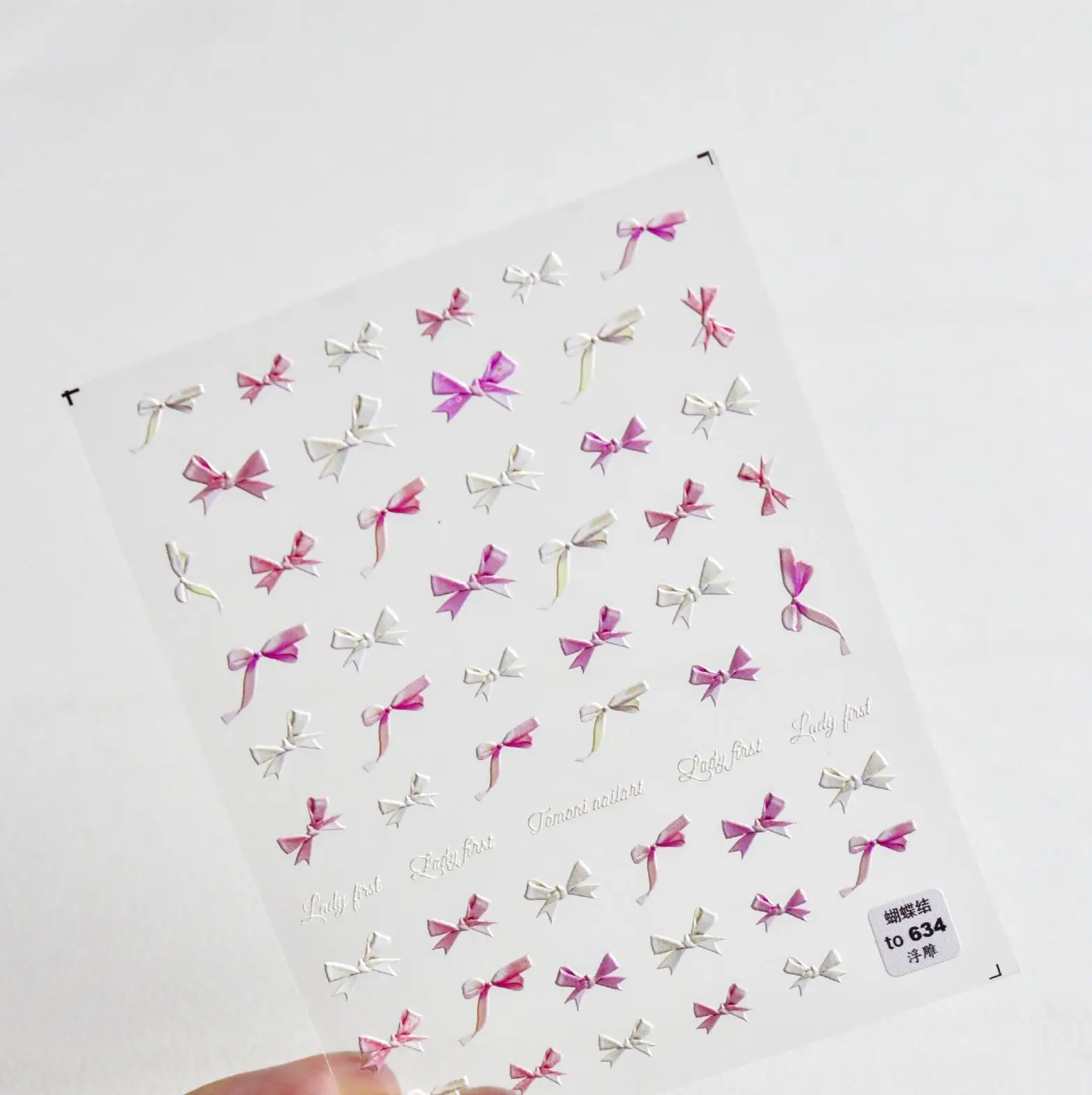 1 шт., 5D акриловые рельефные наклейки для ногтей с розовым бантом
