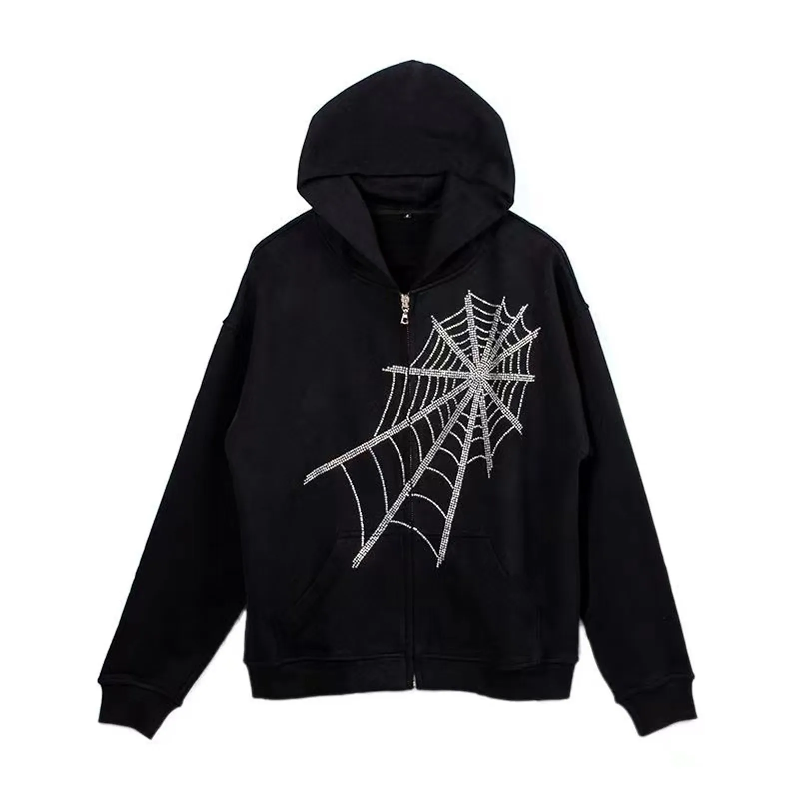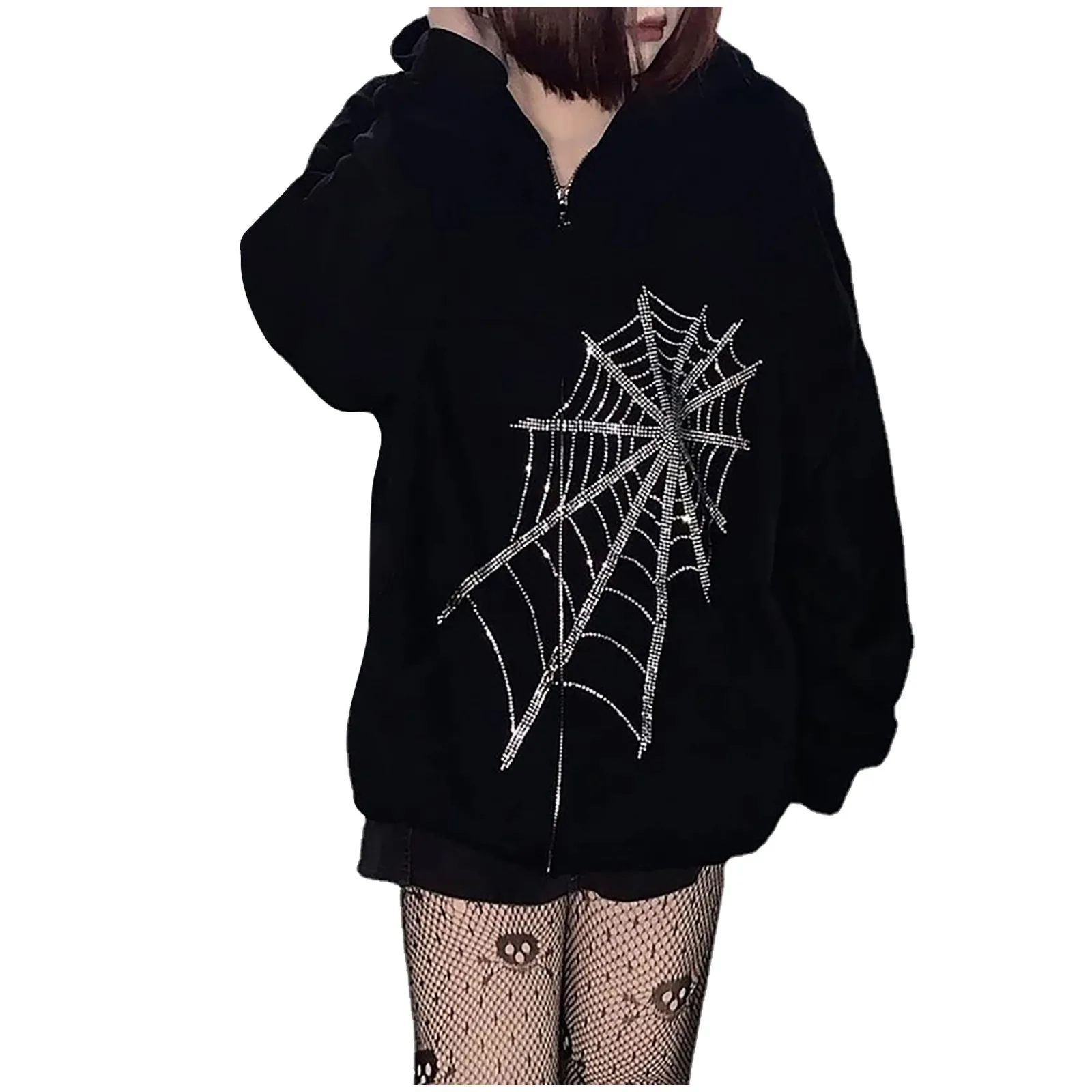 Толстовка Стразы в готическом стиле, худи на молнии с паутиной, Осе...