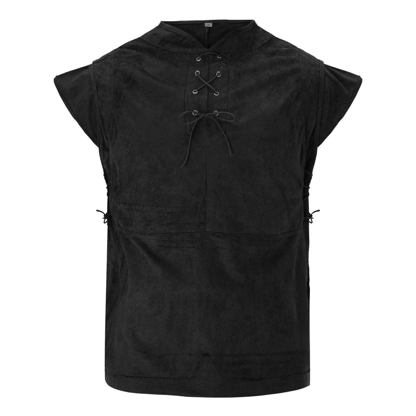 Жилет Мужской винтажный на шнуровке, однотонный Приталенный жилет с круглым вырезом, короткий рукав в викторианском стиле ретро, одежда в готическом стиле панк