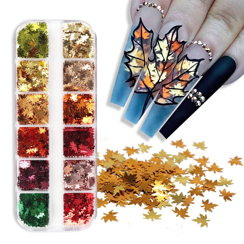 12 сеток голографический кленовый лист блестка для ногтей лазерные красочные блестящие хлопья дизайн маникюра осенние украшения для ногтей аксессуары