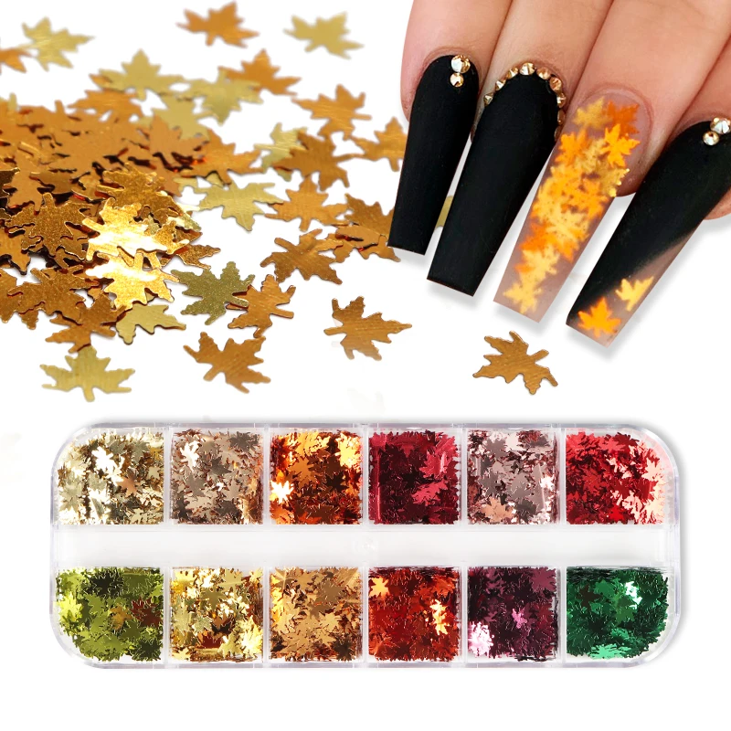 Количество: 1 коробкаПосылка: 12 Маникюр для ногтей сетка пайеткиФорма: кленовый лист