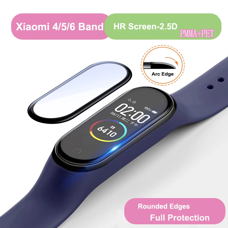 Защитная пленка для Xiaomi Band 4, 5, 6, с закругленными краями, 9H