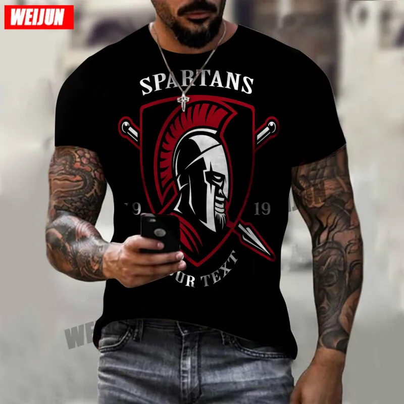 Футболка мужская с 3D-принтом спартанской головы, летняя дышащая универсальная Повседневная футболка с коротким рукавом, большие размеры, 2021