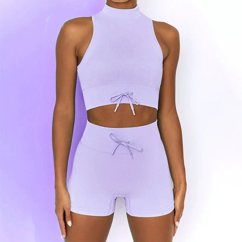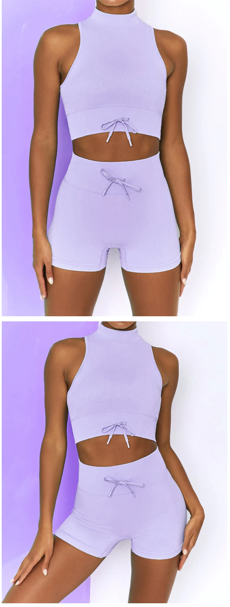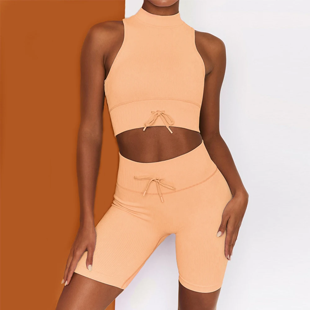 Комплект Спортивный женский из двух предметов, бесшовный укороченный топ с бюстгальтером и шорты, тренировочная одежда, одежда для фитнеса, тренировочный женский костюм для йоги
