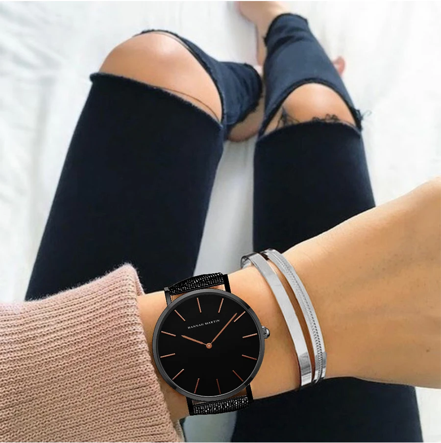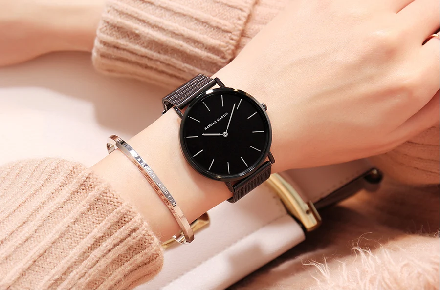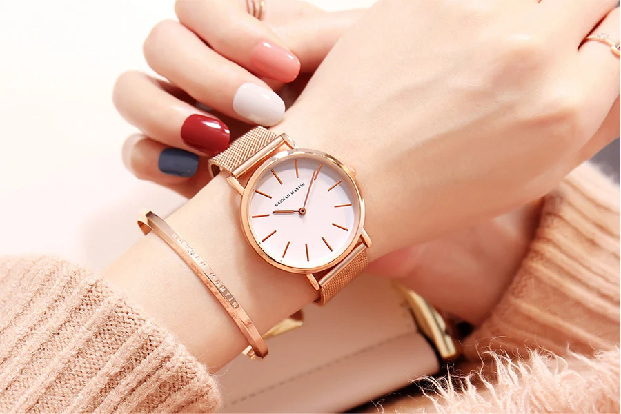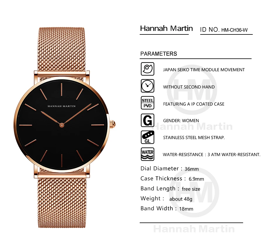 Японские кварцевые часы высокого качества 36 мм hannah Martin женские часы из нержавеющей стали с сеткой розовое золото водонепроницаемые женские часы Прямая поставка