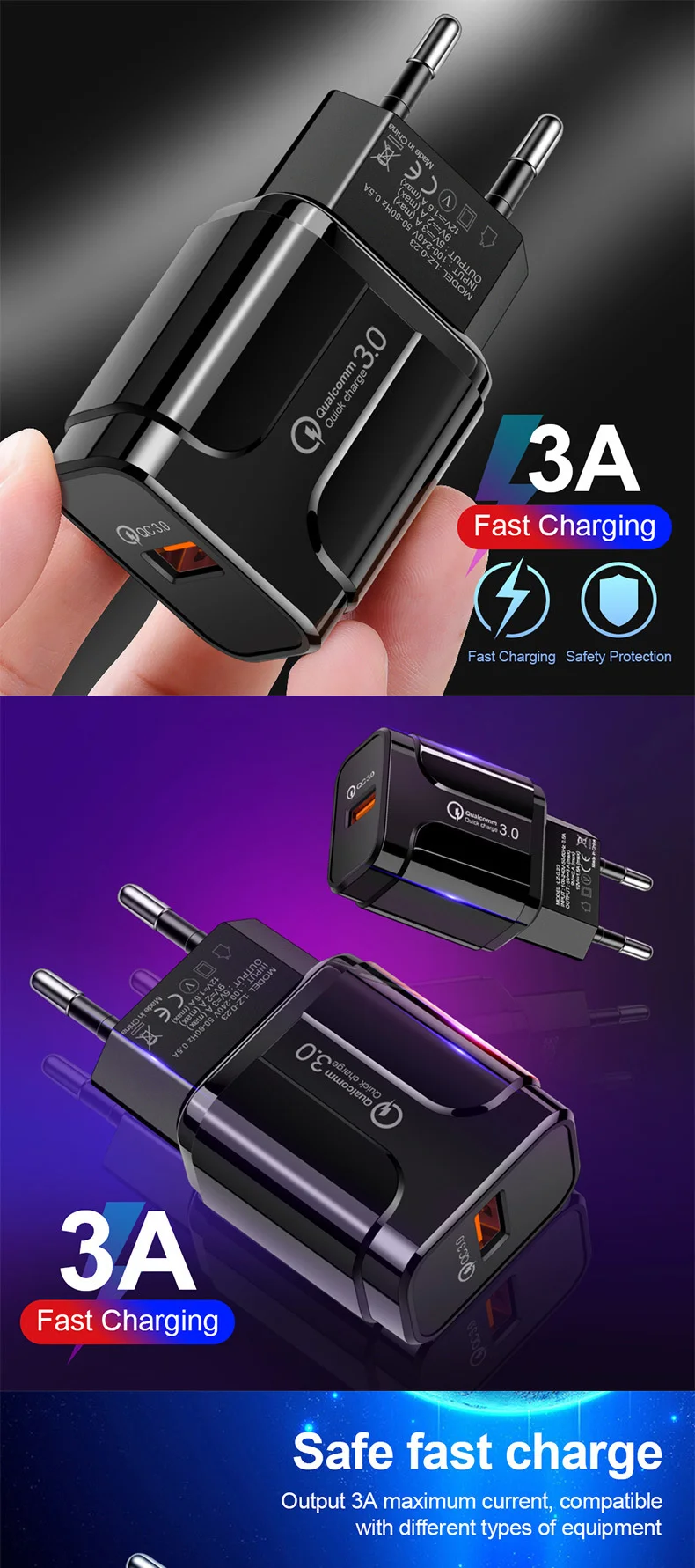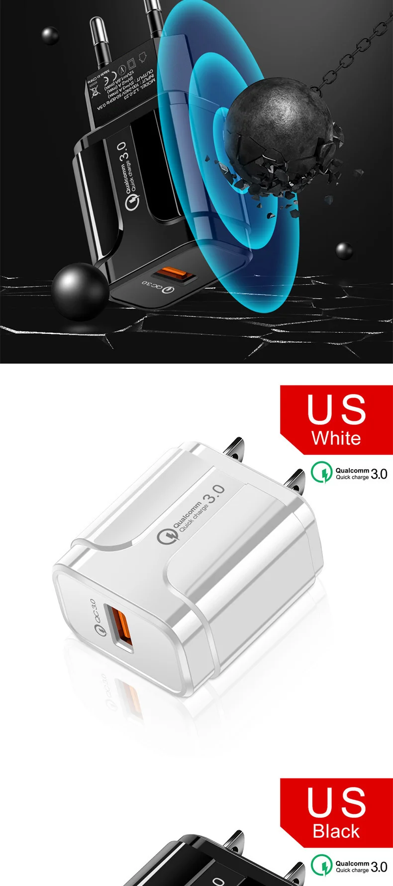 Настенное зарядное устройство, мобильный телефон, 3,0, 18 Вт, для быстрой зарядки ЕС, США, 4,0, настенное зарядное устройство Usb для iphone, Samsung, Xiaomi