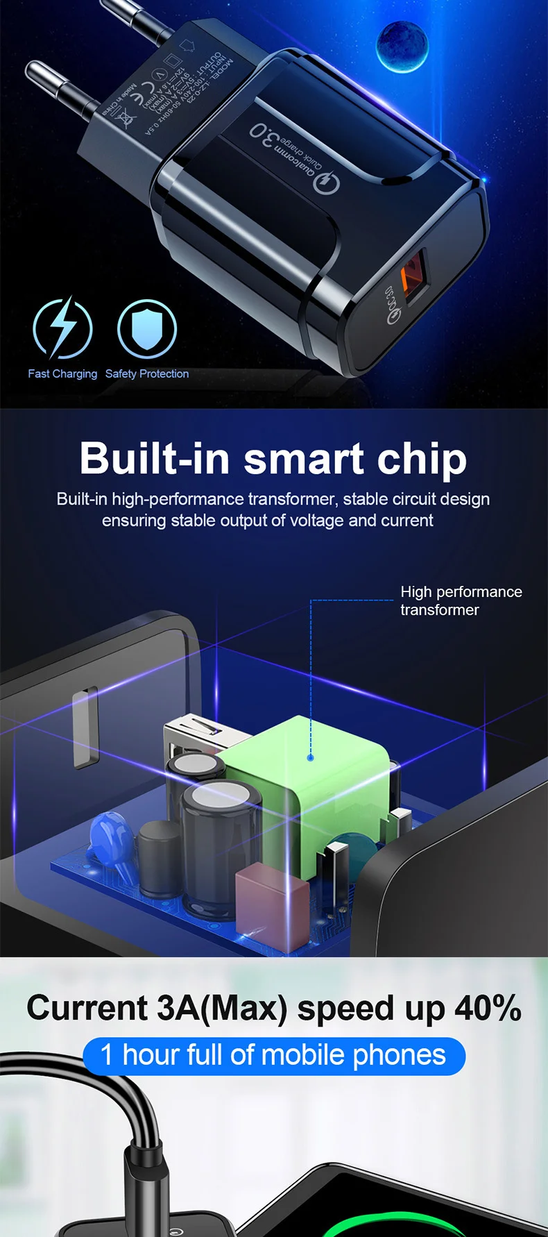 Зарядное устройство QC 3,0 с одним USB-портом для быстрой зарядки м...