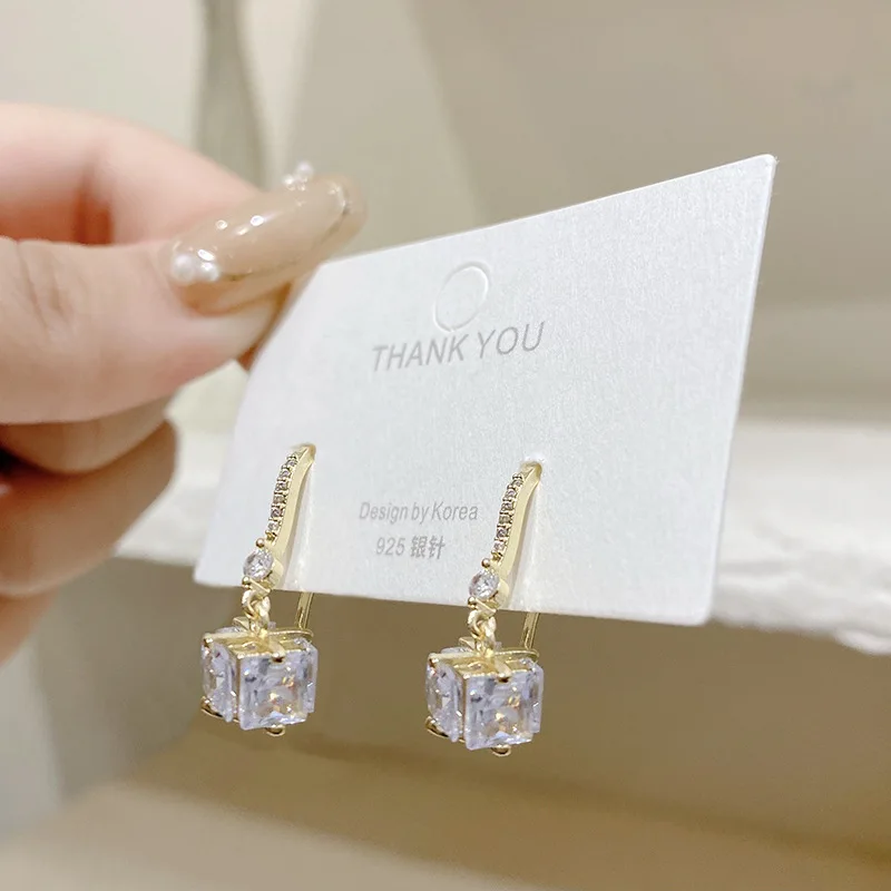 Модные милые маленькие серьги в европейском и американском ретро стиле, простые милые и элегантные квадратные подвески, женские Украшения для ушей