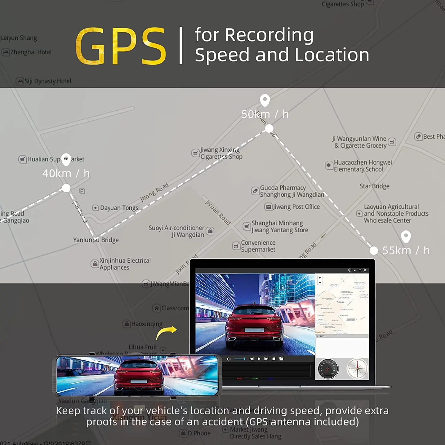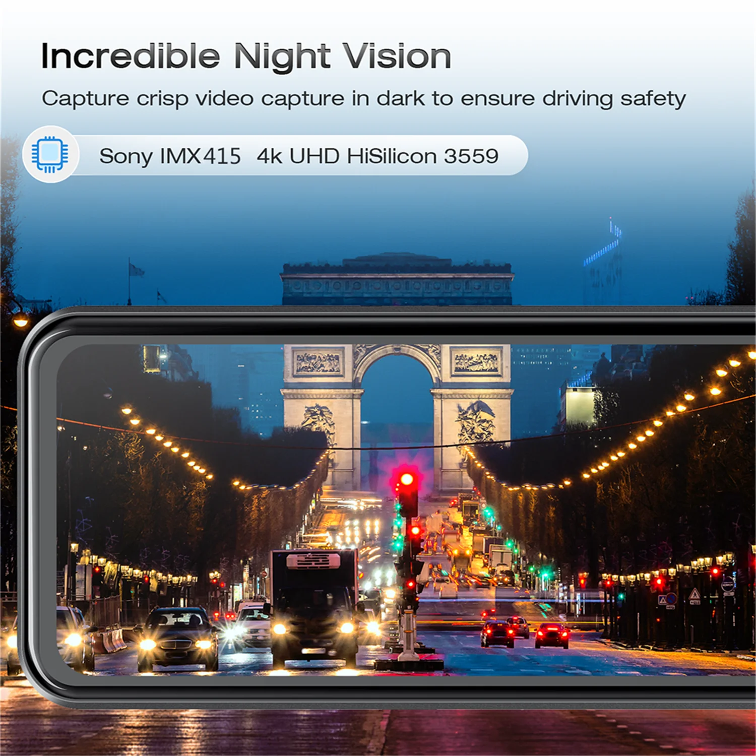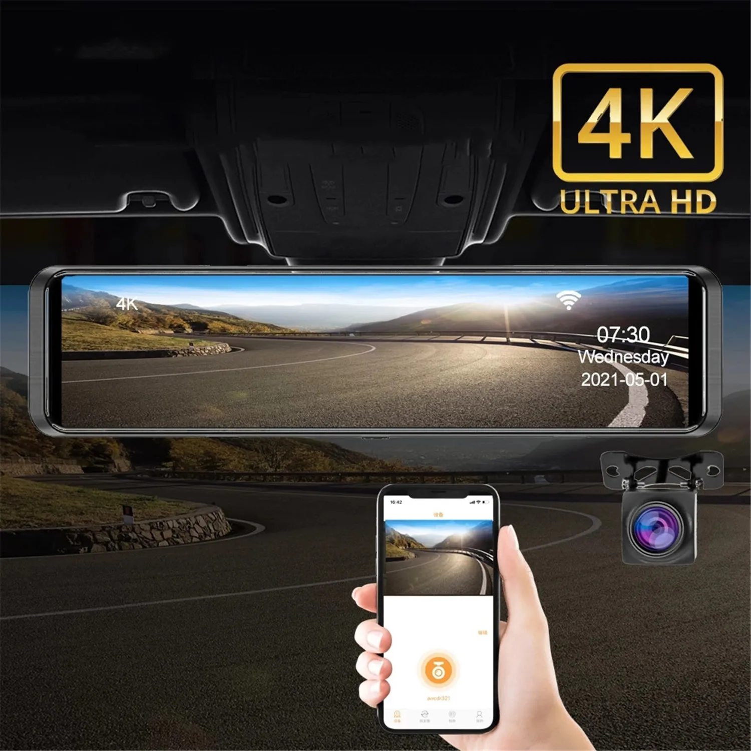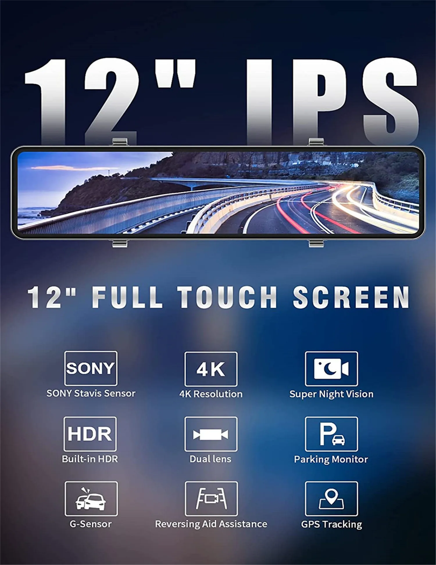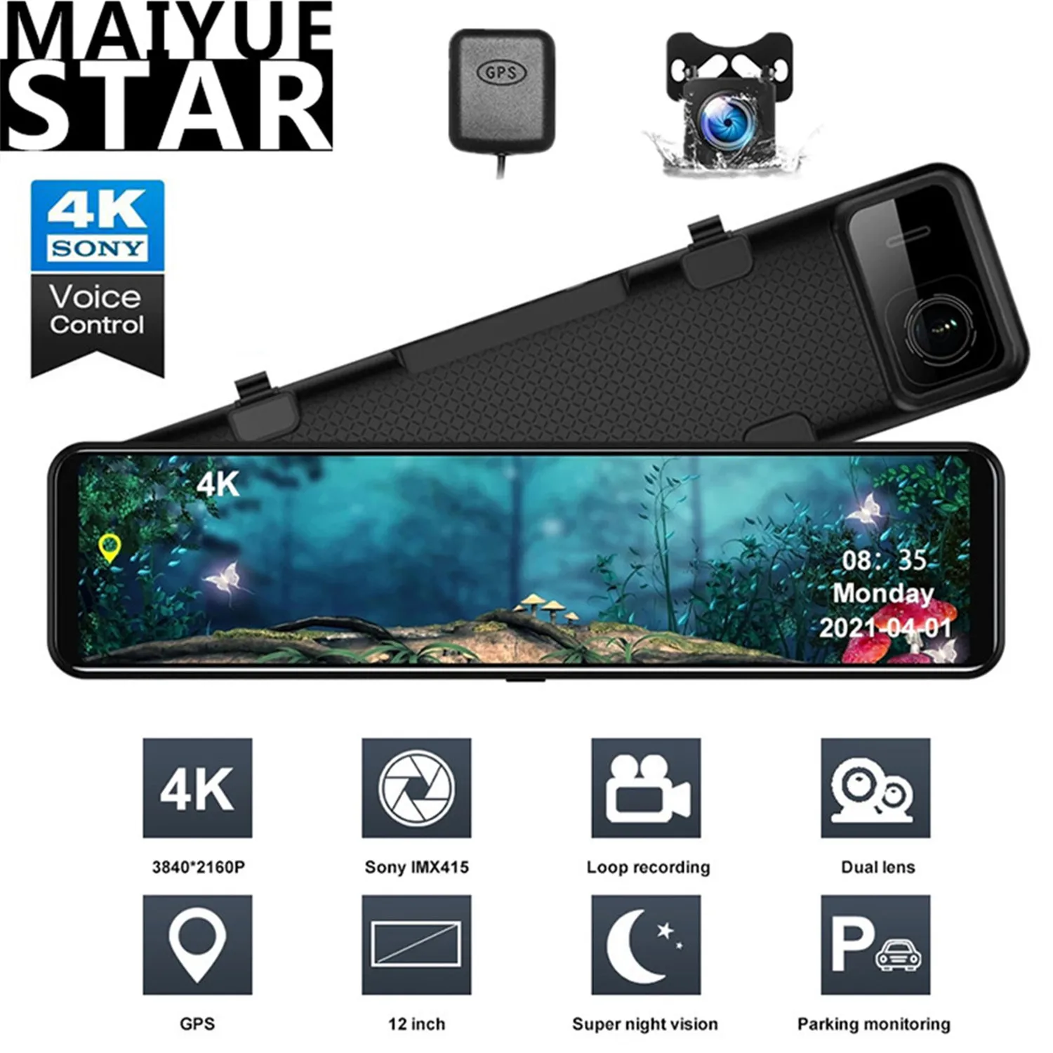 Видеорегистратор Sony IMX415, 12 дюймов, GPS, WIFI, ночное видение, 2160P + 1080P