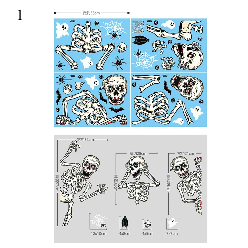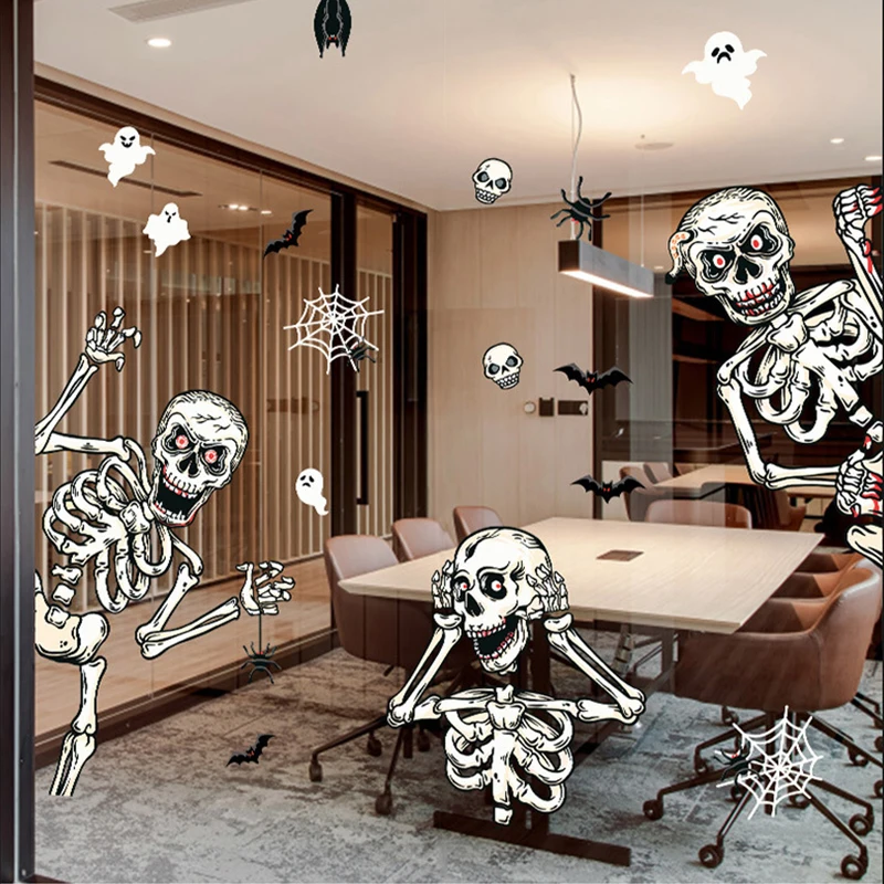 Наклейки на стену с черепом, наклейки со страшками, статические наклейки, Мультяшные декоративные наклейки на стену, водонепроницаемые настенные наклейки на Хэллоуин