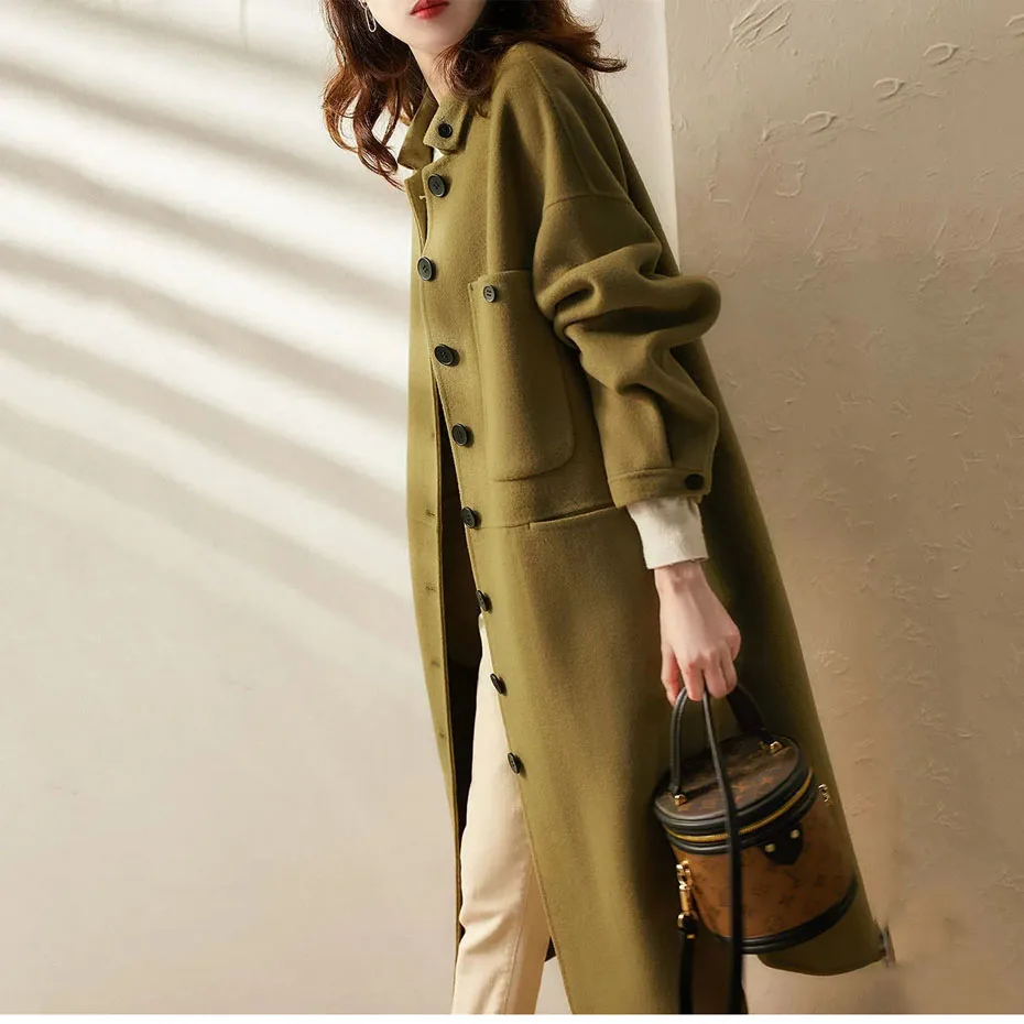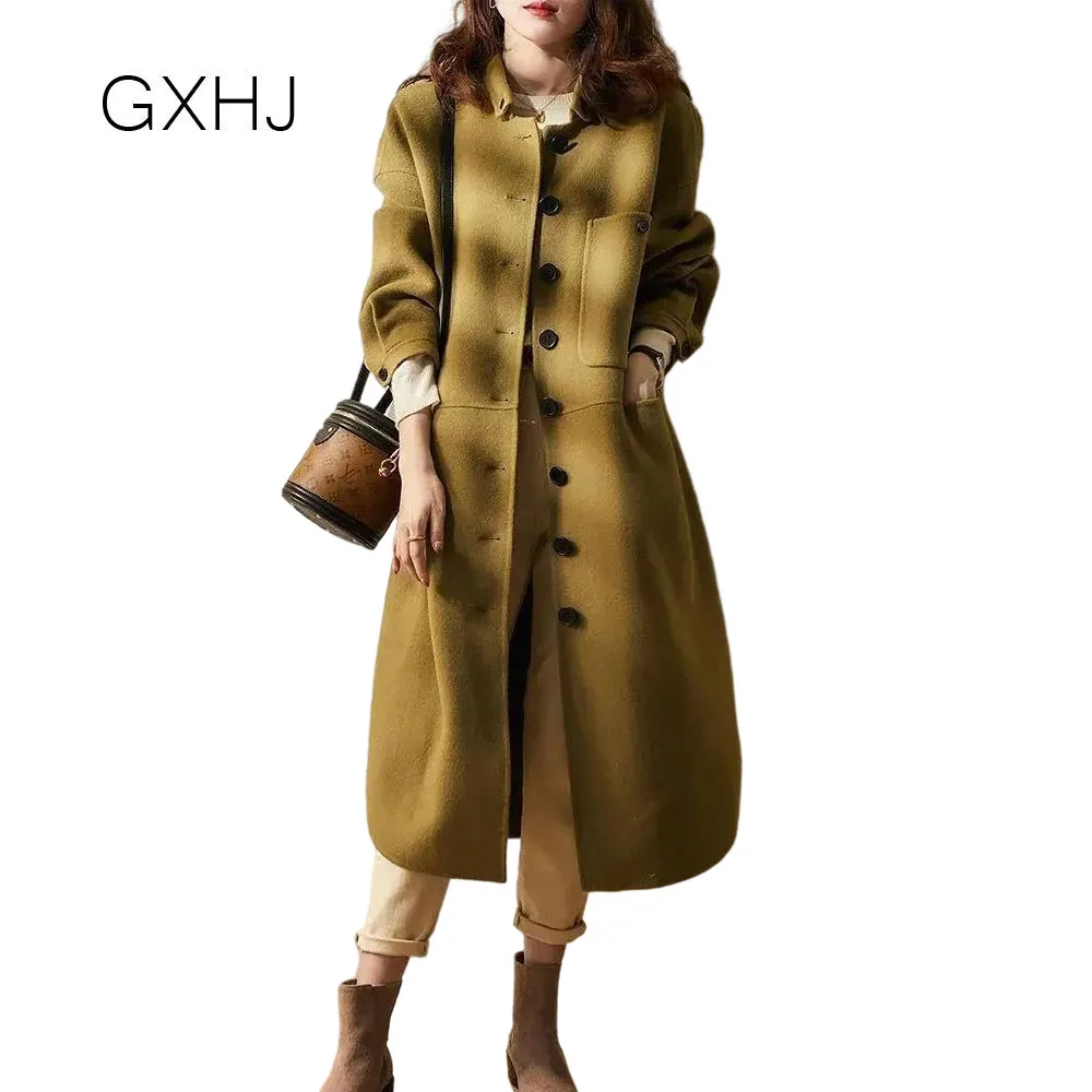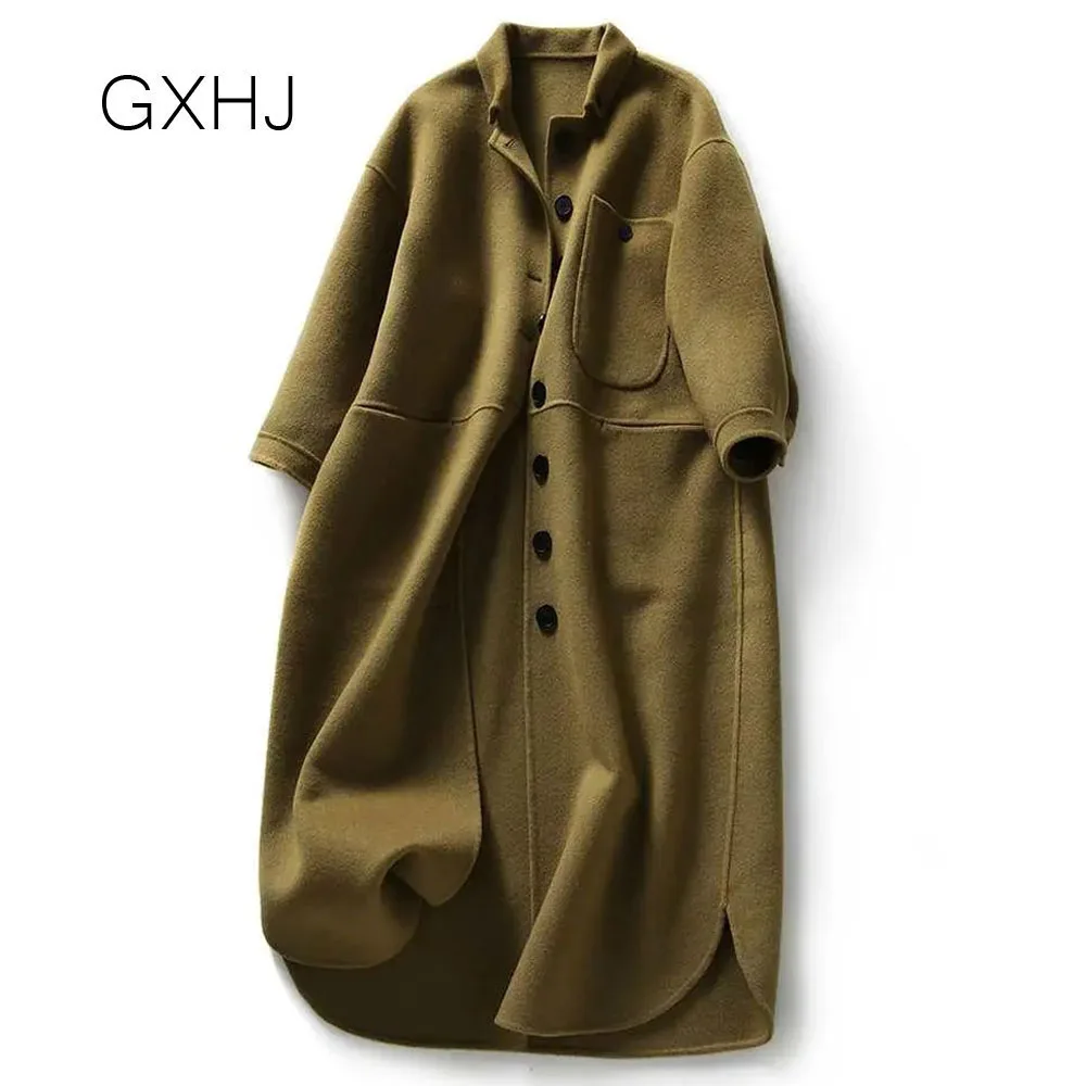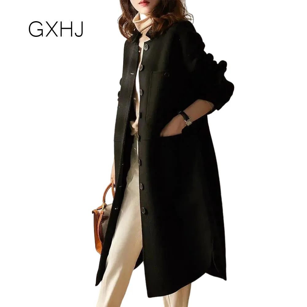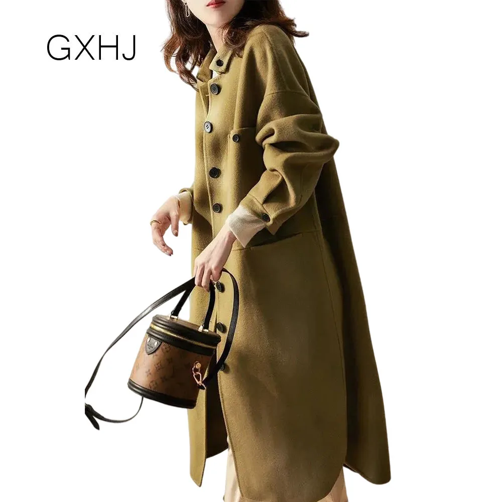 2021 зимняя одежда, шерстяное пальто, Осеннее Женское шерстяное пальто, модная куртка, элегантная сверхдлинная Повседневная рубашка из смеси, зимняя куртка LHJ31