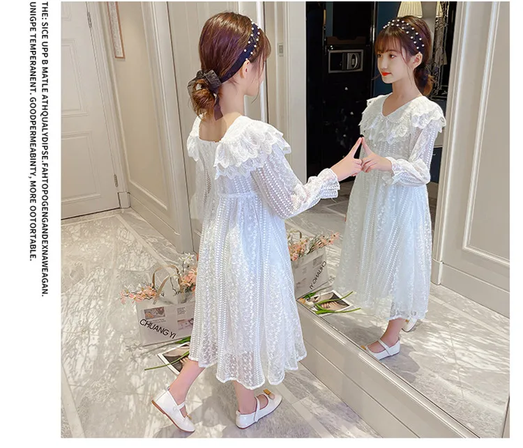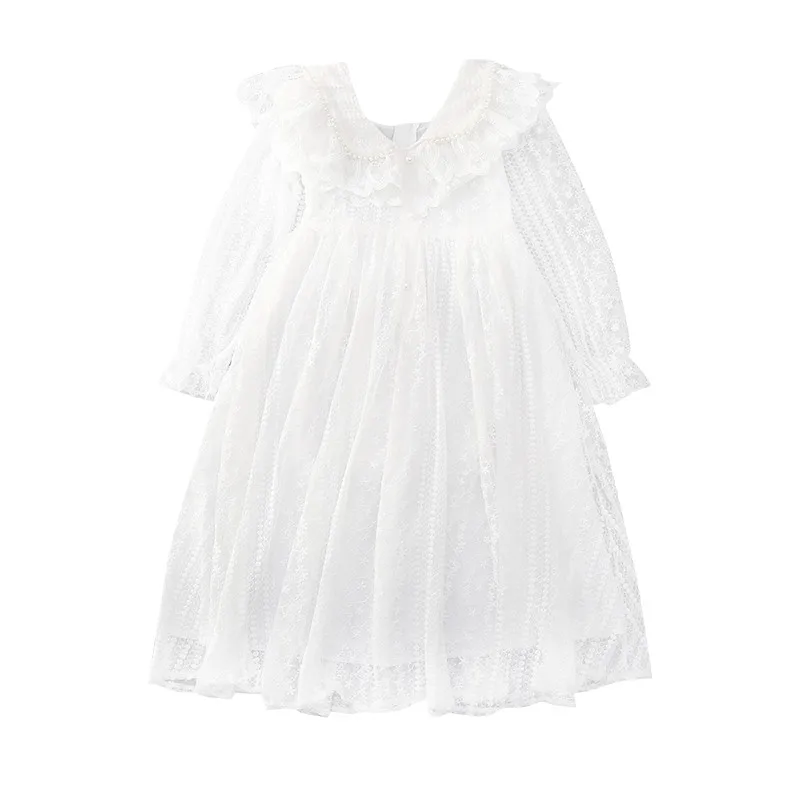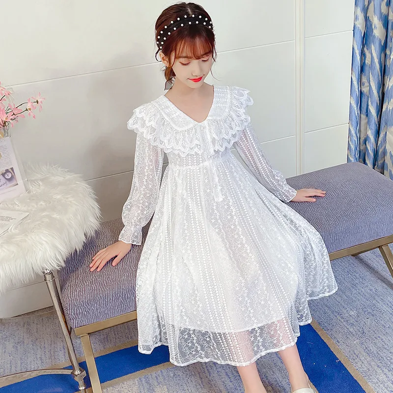 2021 г. Новые Винтажные белые кружевные Детские платья принцессы вечернее платье с длинными рукавами для девочек от 4 до 14 лет
