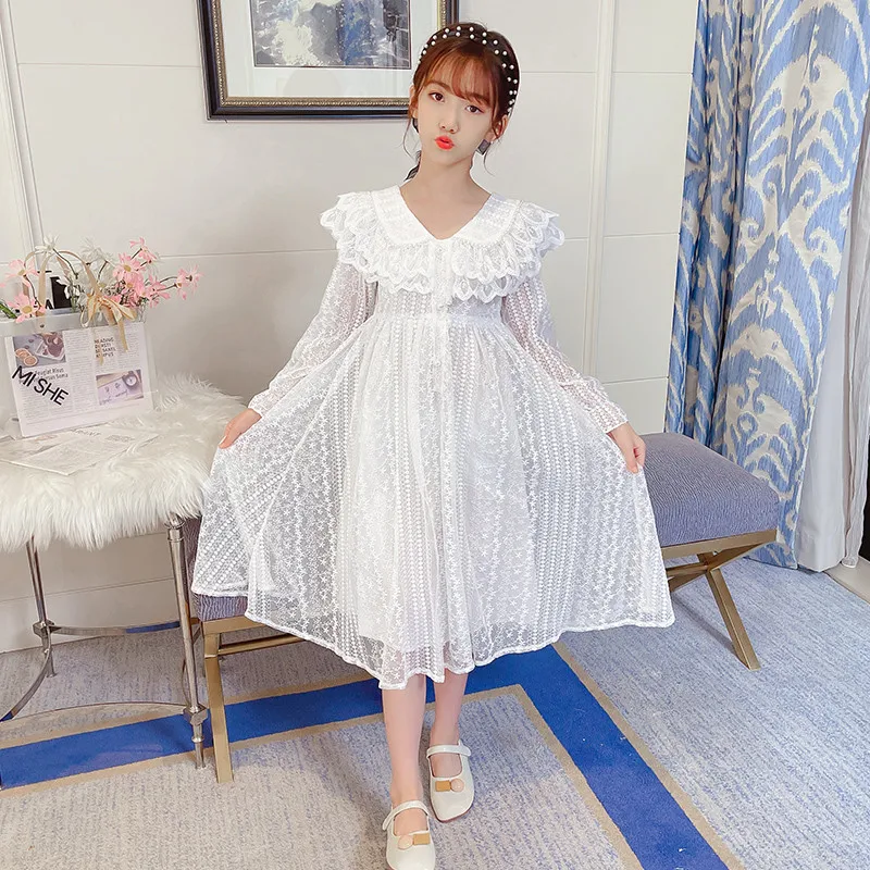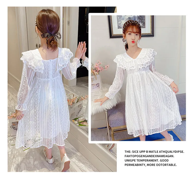 Платье детское кружевное, белое, с длинным рукавом, на свадьбу, вечевечерние, для девочек 4-14 лет, 2021