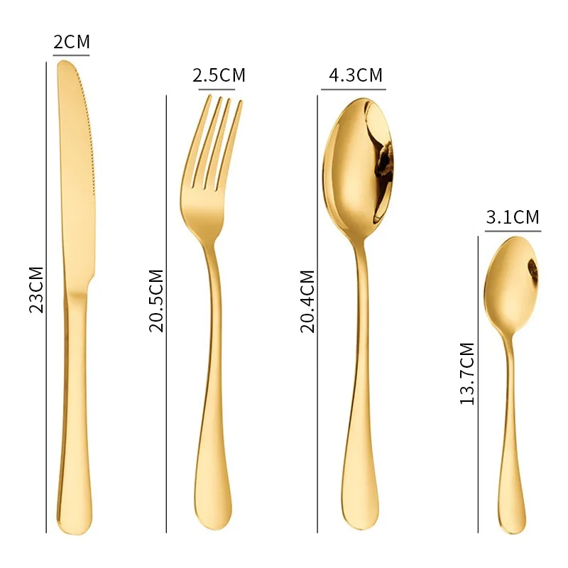 Особенности:* Набор стальных обедов 24 шт. для 6 человек* Дружелюбная Высококачественная посуда из нержавеющей стали, край продукта был тщательно отполирован, обеспечивая безопасность Ваших губ.* Идеально подходит для кухни, отелей и ресторанов. Этот высококачественный набор столовых приборов из нержавеющей стали удобен для хранения и долговечен для повседневного использования, сбора, вечеринок, кемпинга и т. д.* Изготовлен из высококачественной нержавеющей стали, с более сильным сопротивлением ржавчине;* Края гладкие и стильные, с антикоррозийным зеркальным лаком, высокой твердостью, без свинца, без кадмия, без фталата, без BPA, и долговечные.Спецификация:Наименование: набор посуды в западном стилеМатериал: нержавеющая стальКоличество: 24 шт./компл.Цвет: как показаноУпаковка включает:6 * Настольный нож6 * столовая ложка6 * вилка для ужина6 * чайная ложка1 * стеллаж для храненияПримечание:1. Возможны незначительные отклонения в размере на 1-3 см (0,4-1,18 ") измерения выполнены вручную, допускаются отклонения в размере в пределах и небольшое отличие в цвете может незначительно отличаться из-за разных настроек экрана.2. В связи с использованием разных по светильник экране монитора фактический цвет товар точно такой же, как и цвет изделия на фото может быть s светильник ly отличается из-за характеристик монитора компьютера. Пожалуйста, поймите.