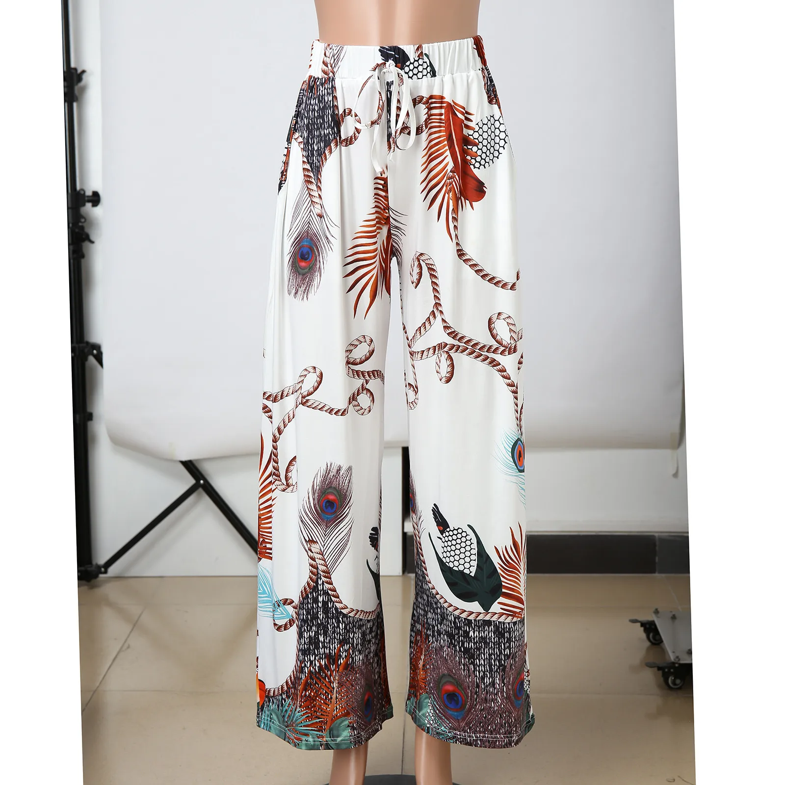 Новые брюки с широкими штанинами в стиле бохо для женщин, пляжные брюки с высокой талией и принтом, с карманами, женские свободные повседневные легкие брюки