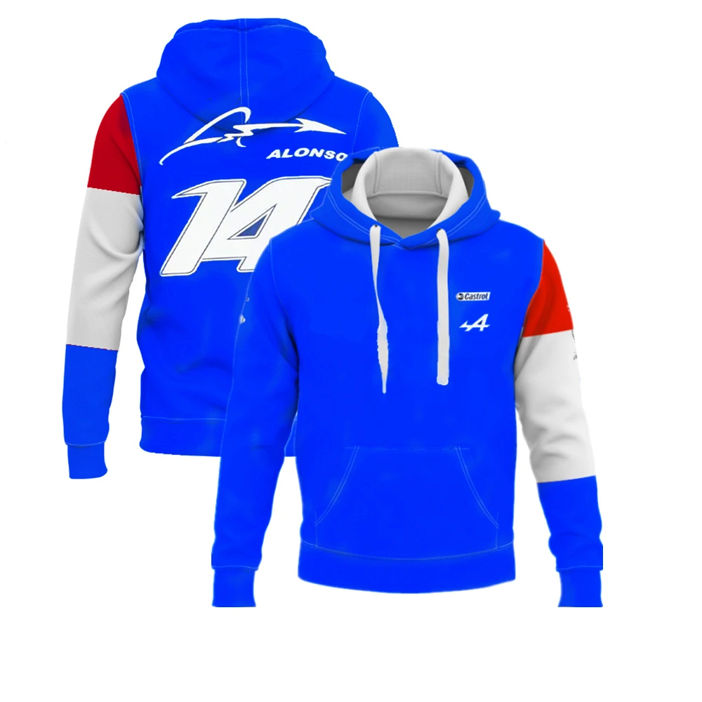 Мужская дышащая толстовка Teamline, голубая и черная рубашка с капюшоном, сезон одежды для гонок, альпийская команда F1, 14, Толстовка для фанатов гонок, 2021