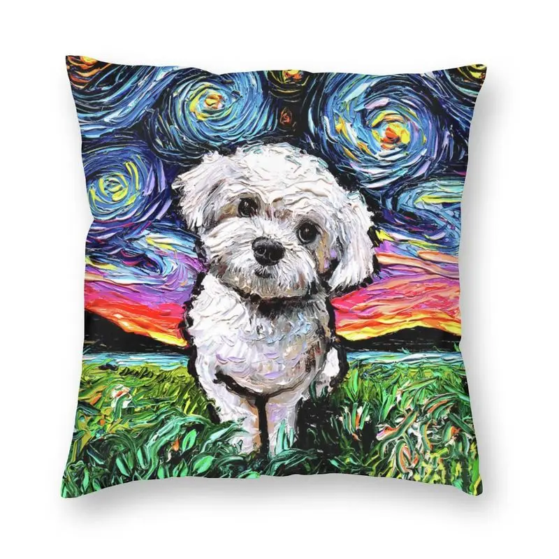 Яркая наволочка для подушки в виде пуделя, собаки, мальтипоо, карти...