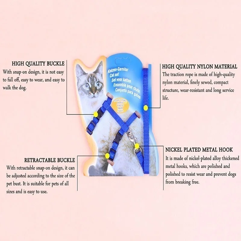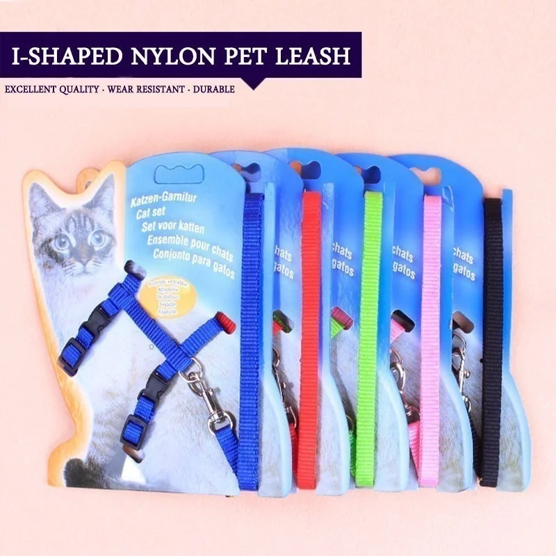 Лаконичный однотонный поводок I-образной формы для маленьких собак, регулируемый нейлоновый поводок для щенков и кошек, жилет, аксессуары для домашних животных, товары для кошек, домашних животных