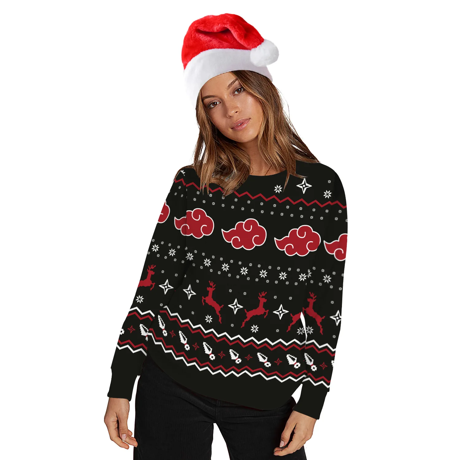 Уродливый Рождественский свитер 3D аниме принт Осень Зима рождестве...