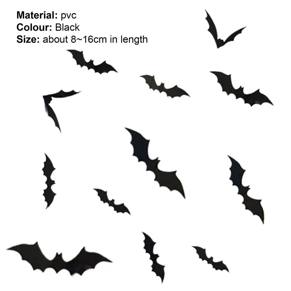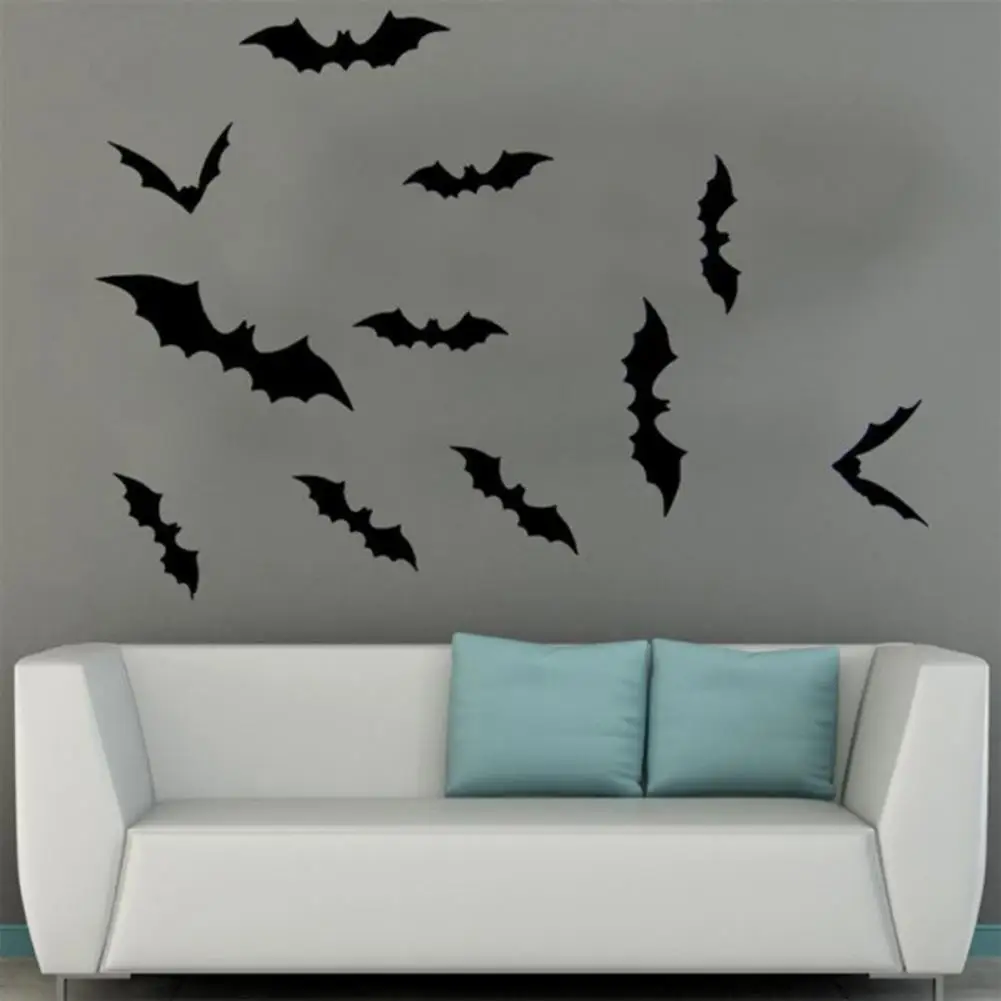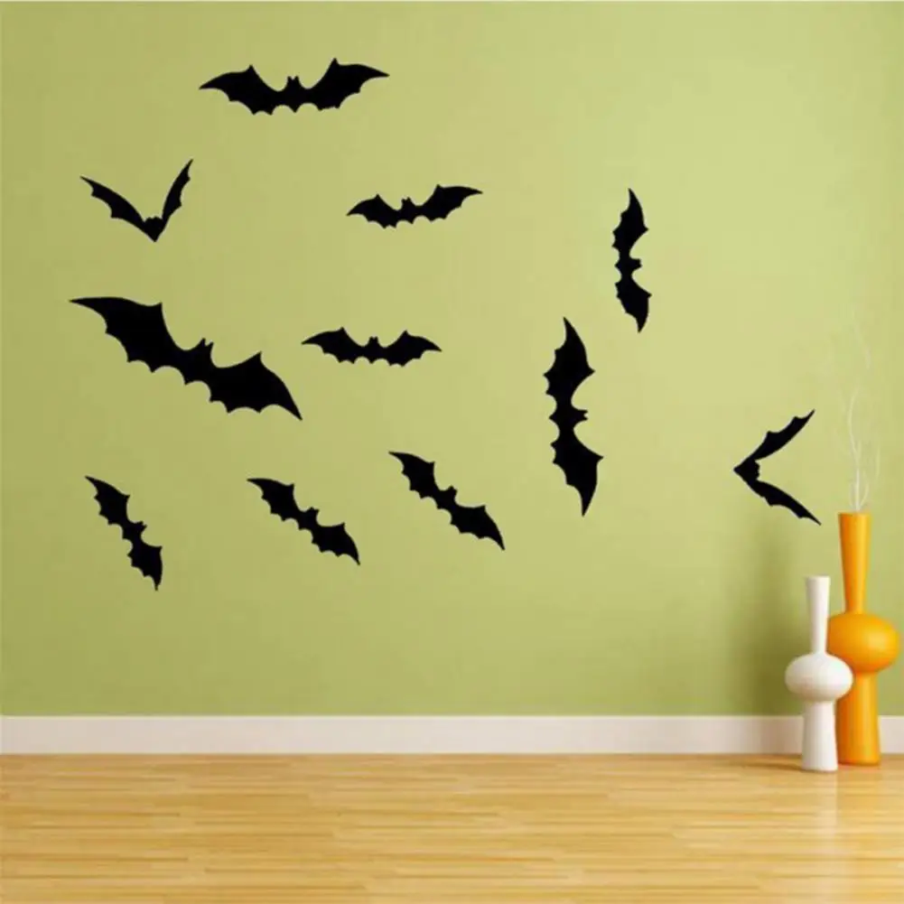 12 шт.компл. наклейки на Хэллоуин летучие мыши черного цвета наклейка на вечеринку 3D летучие мыши наклейка на багаж сделай сам водонепроницаемые наклейки на стену украшение для дома