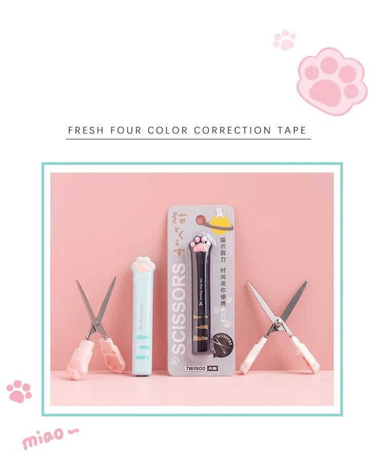 Милые складные ножницы в виде лап, портативный размер, милая кошка, искусственная кожа, для бумаги, для творчества, работы, офиса, школы, подарок для девушки F644