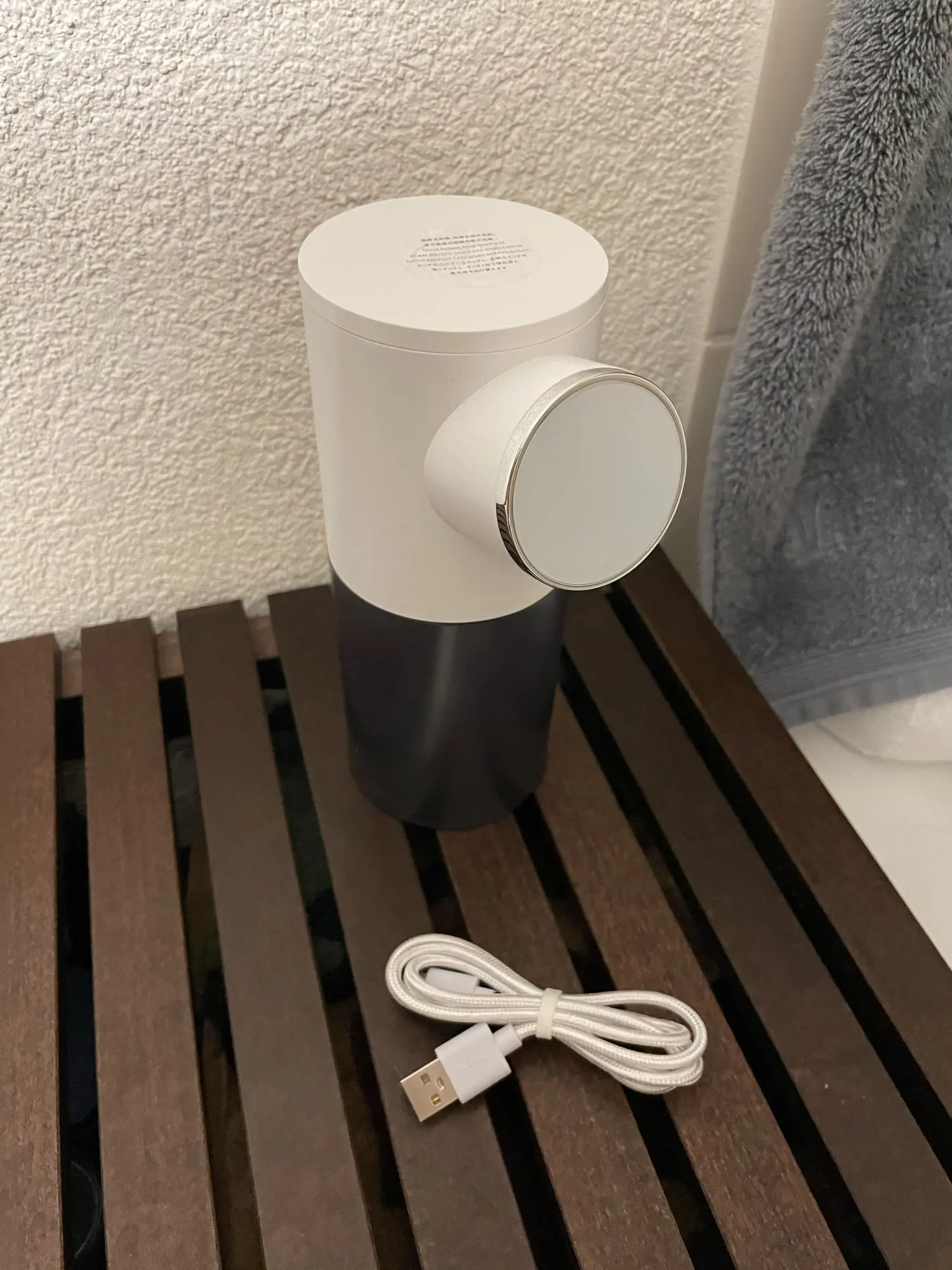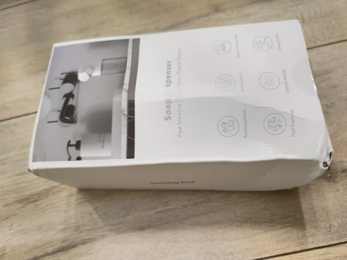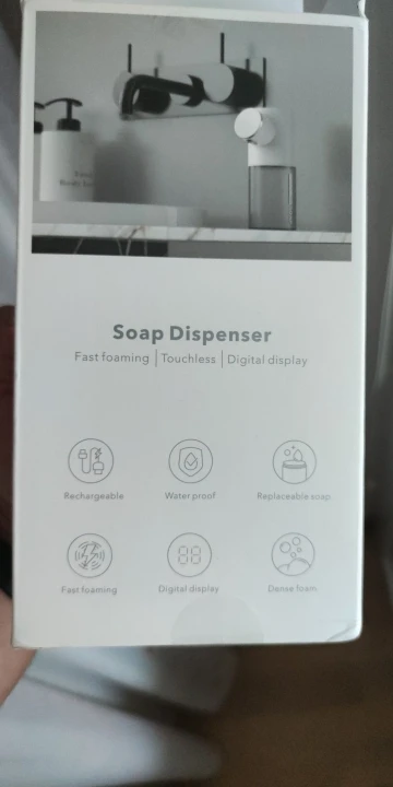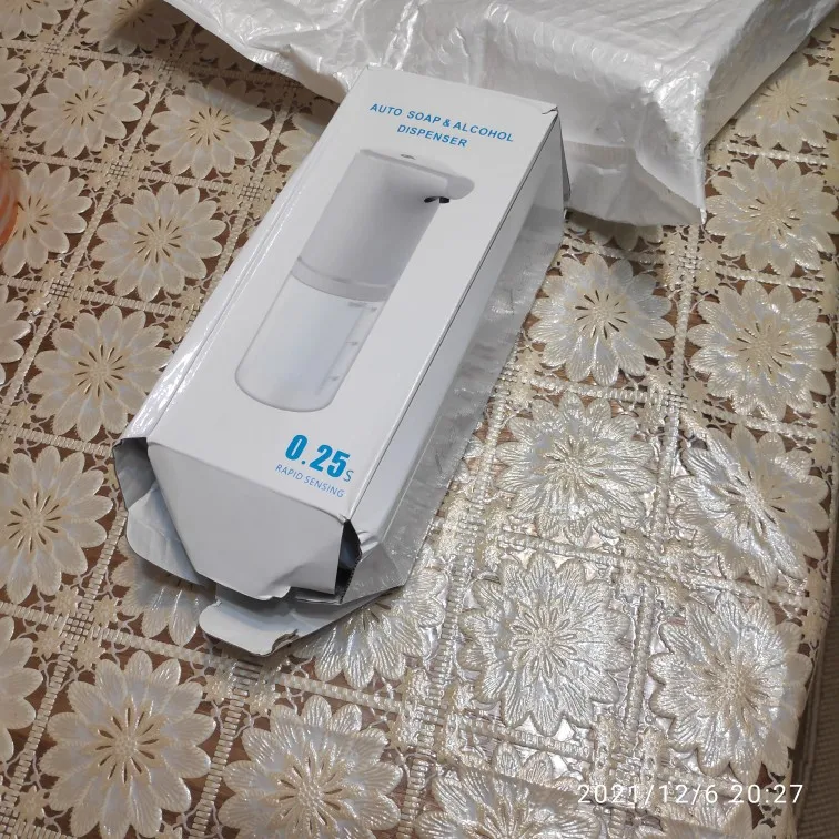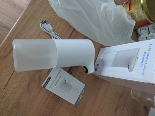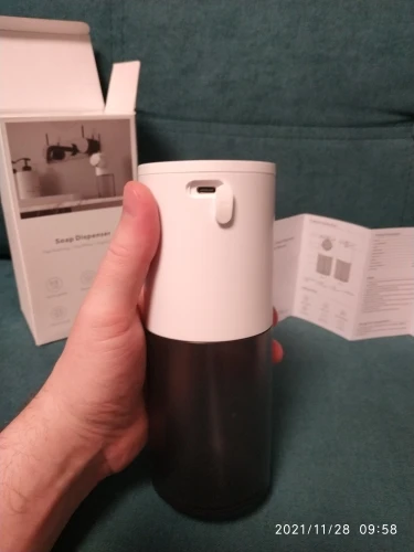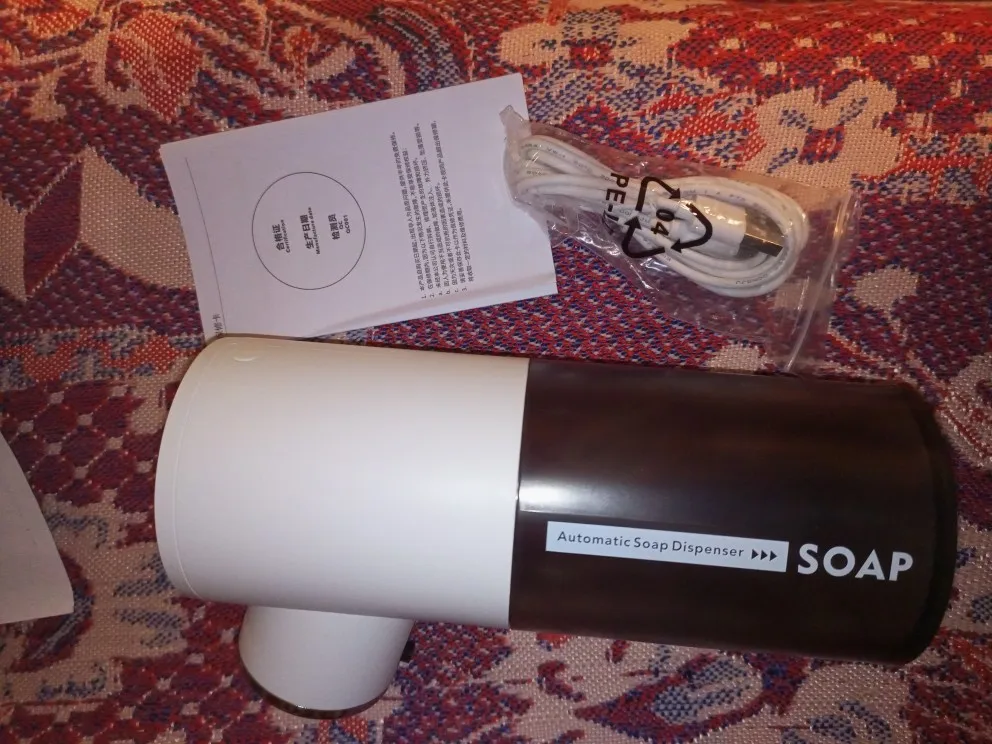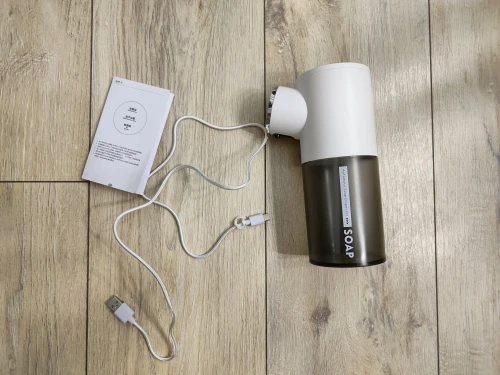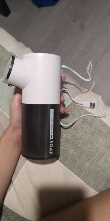 Прибыл очень быстро. Это очень хорошо. Дизайн простой и легко интегрируется в ванную, как в кухне. Вы должны следовать инструкциям, потому что вы должны смешать немного воды с мылом, чтобы хорошо пенить. Поставляется с USB-кабелем для зарядки. Я рекомендую этот продукт.