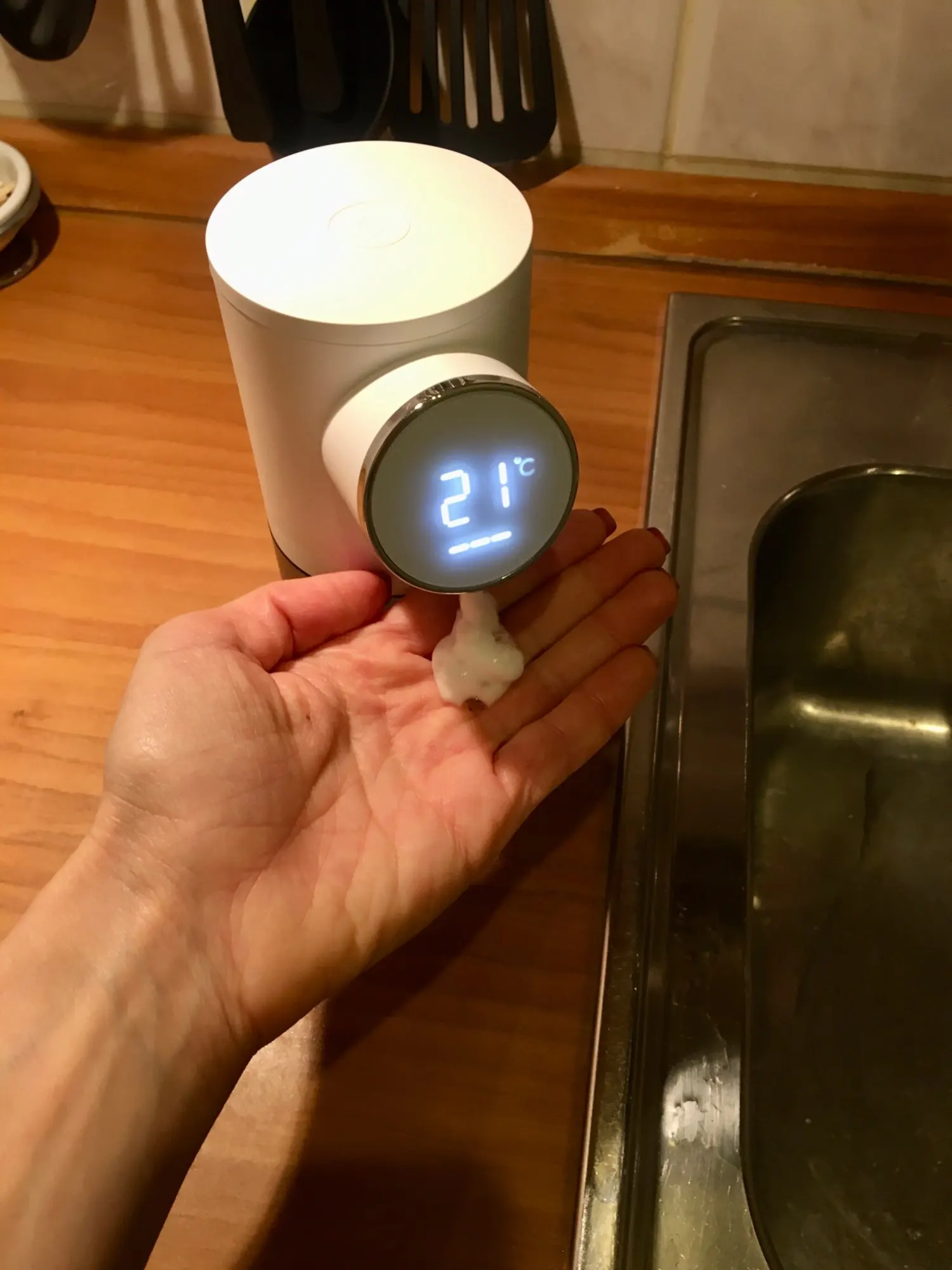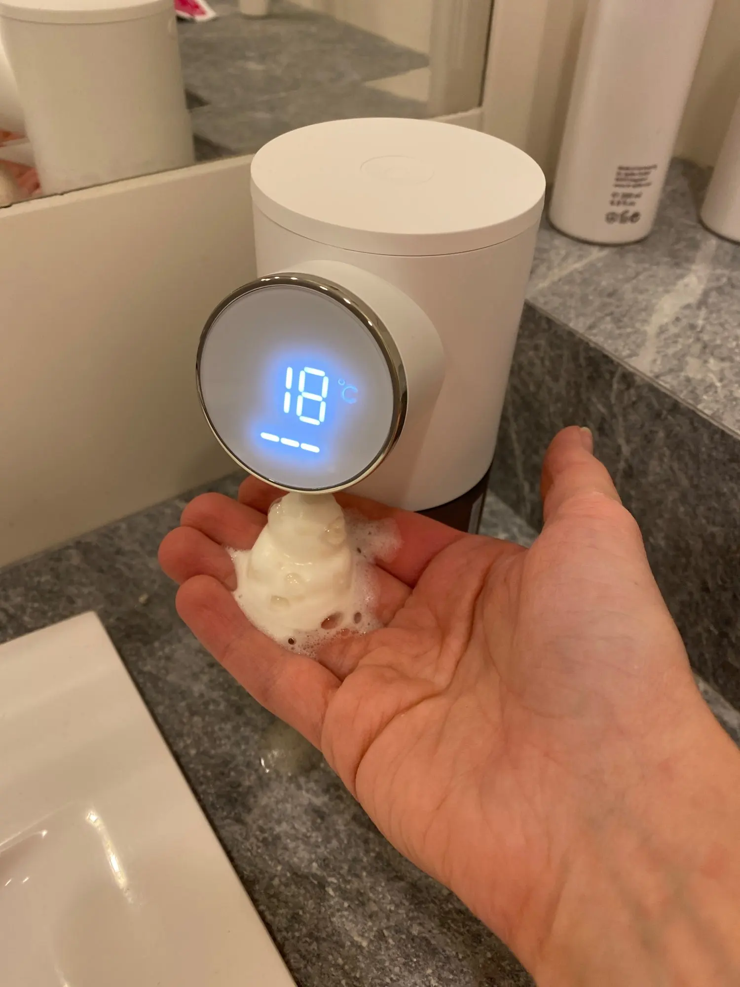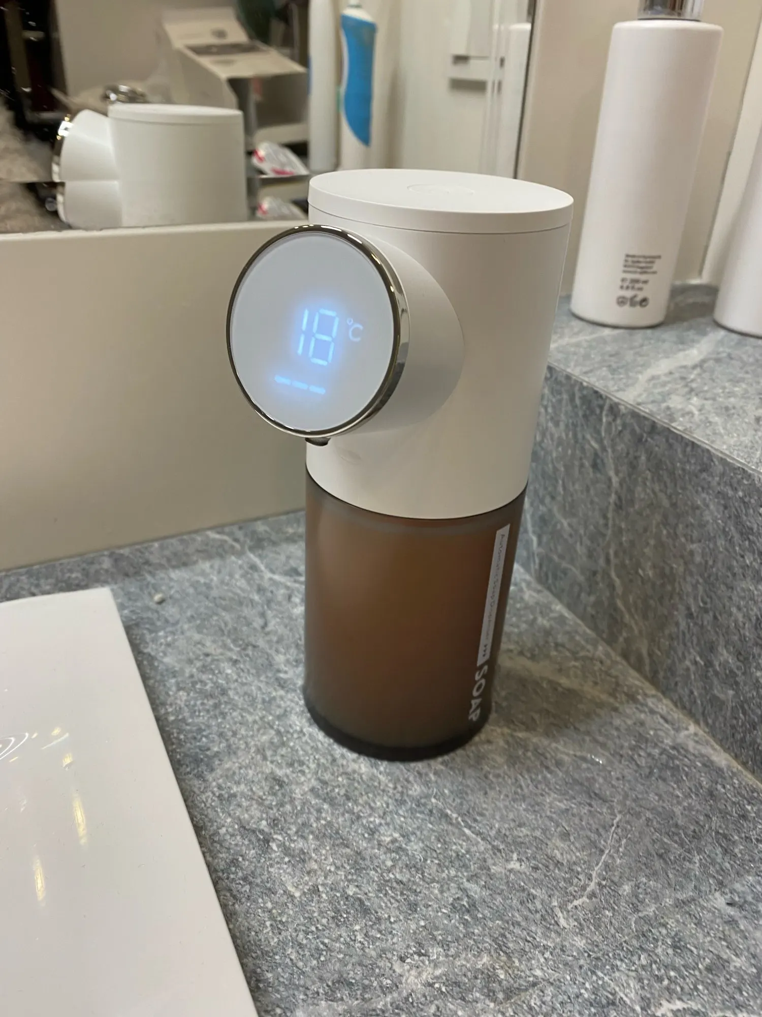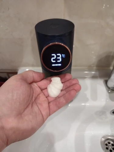Отличный дозатор. Соответствует описанию. Работает из коробки, достаточно залить мыло, разводил 1/4 (1/3 густовато, но зависит от консистенции мыла), пену генерирует отлично. Температуру окружающей среды показывает. Недостатков нет. Доставка быстрая.Продавцу спасибо. Рекомендую.