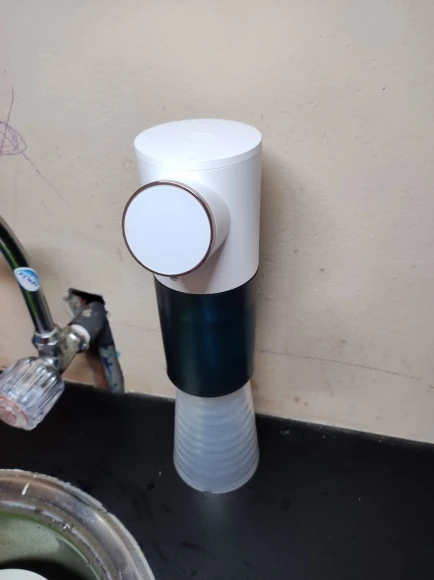 Дозатор мыла имеет сломанный датчик, из-за того, что мыло все еще протекает. Очень неприятная ситуация, не пригодна для использования, но в противном случае выглядит хорошо