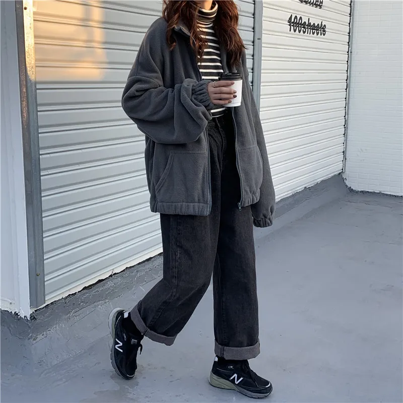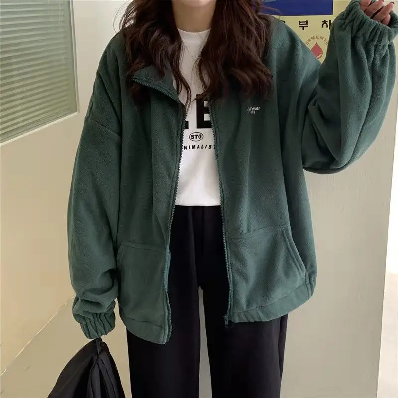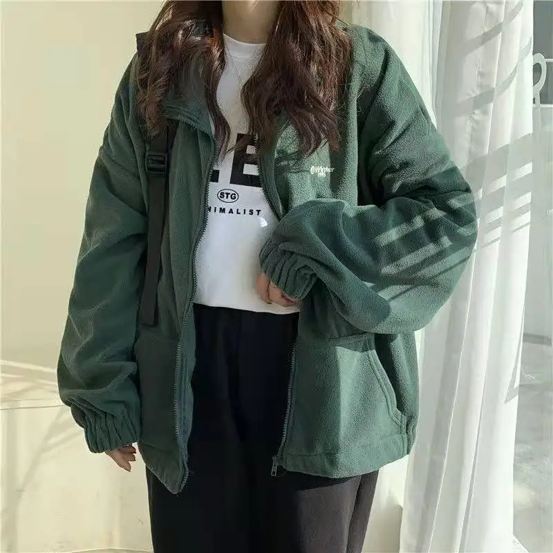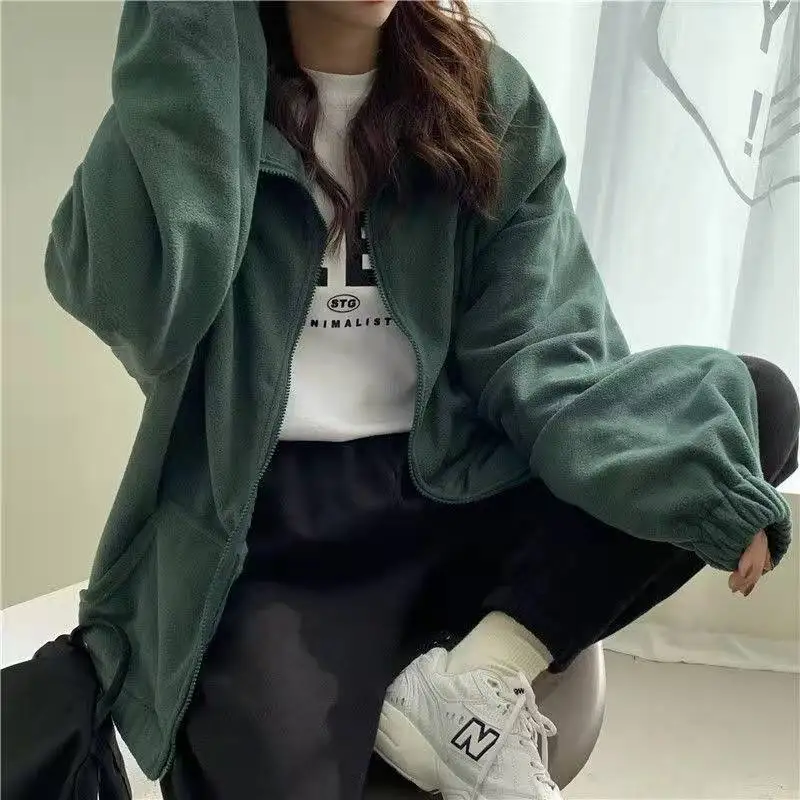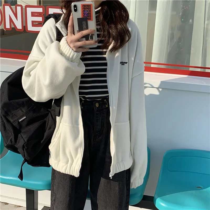Худи в стиле Харадзюку, флисовая толстовка, новинка 2021, осенняя теплая куртка, корейская мода, на молнии, с воротником-стойкой, Женское зимнее пальто, кавайные Топы