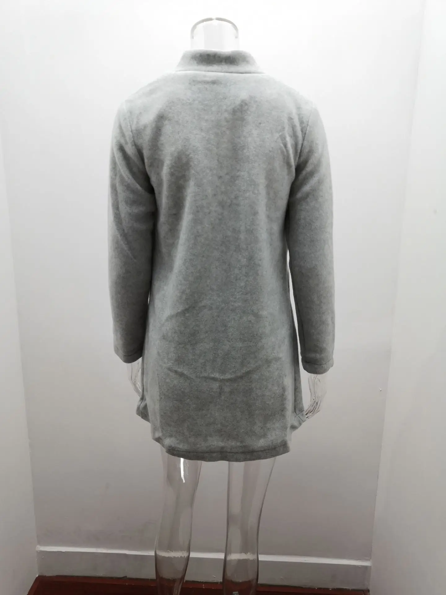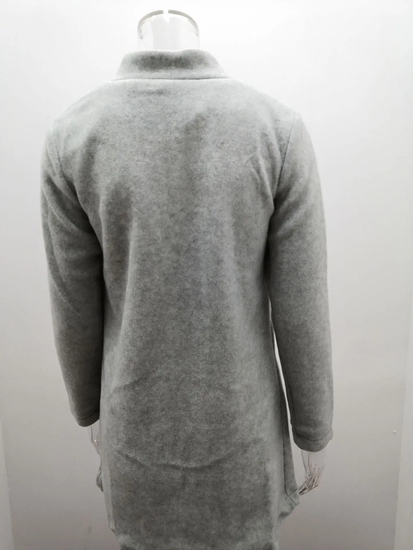 Женское Однотонное шерстяное Свободное пальто со стоячим воротником...