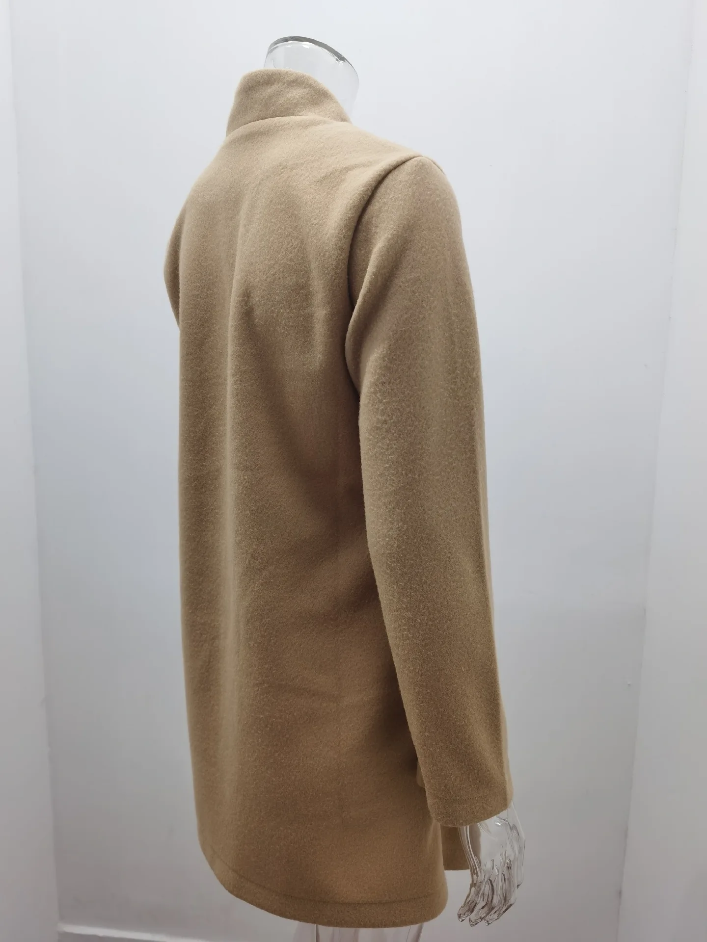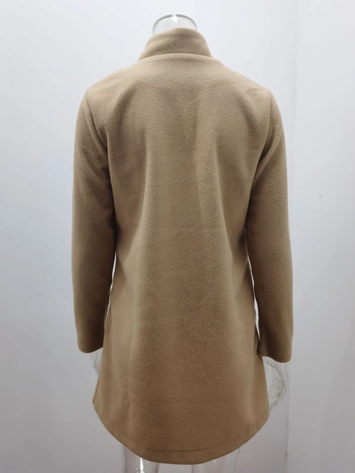 Повседневные модные Универсальные женские пальто и куртки, новинка осень-зима 2021, однотонное Женское шерстяное пальто с воротником-стойкой