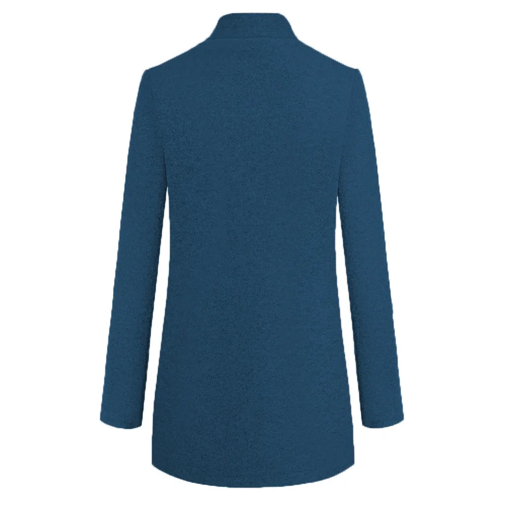 Женская Офисная куртка с воротником-стойкой, Однотонное шерстяное д...