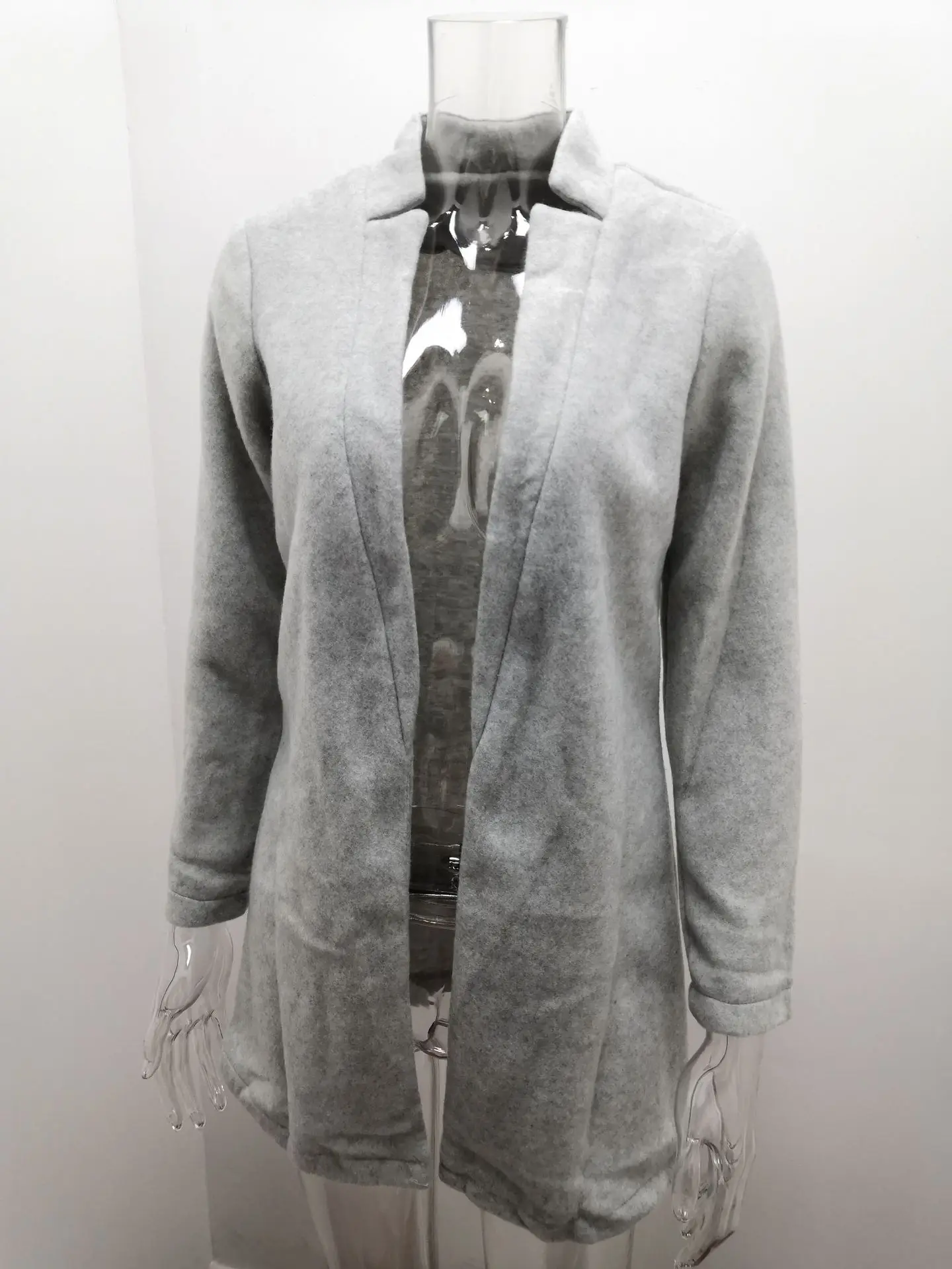 Женский офисный пиджак, шерстяной кардиган, модное однотонное пальт...