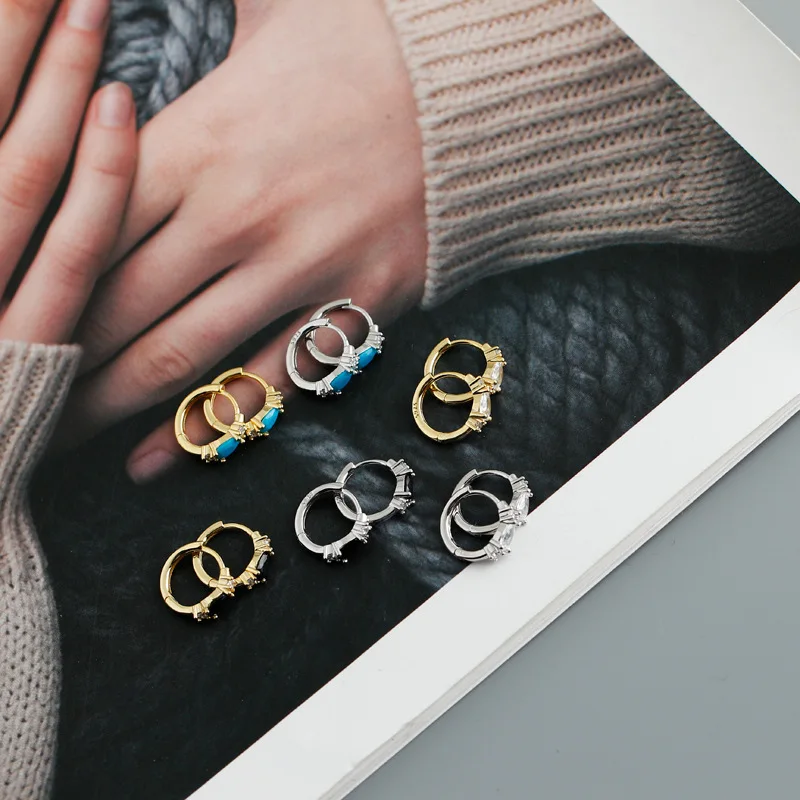 Женские серьги из серебра 925 пробы, с голубой бирюзой и цирконом