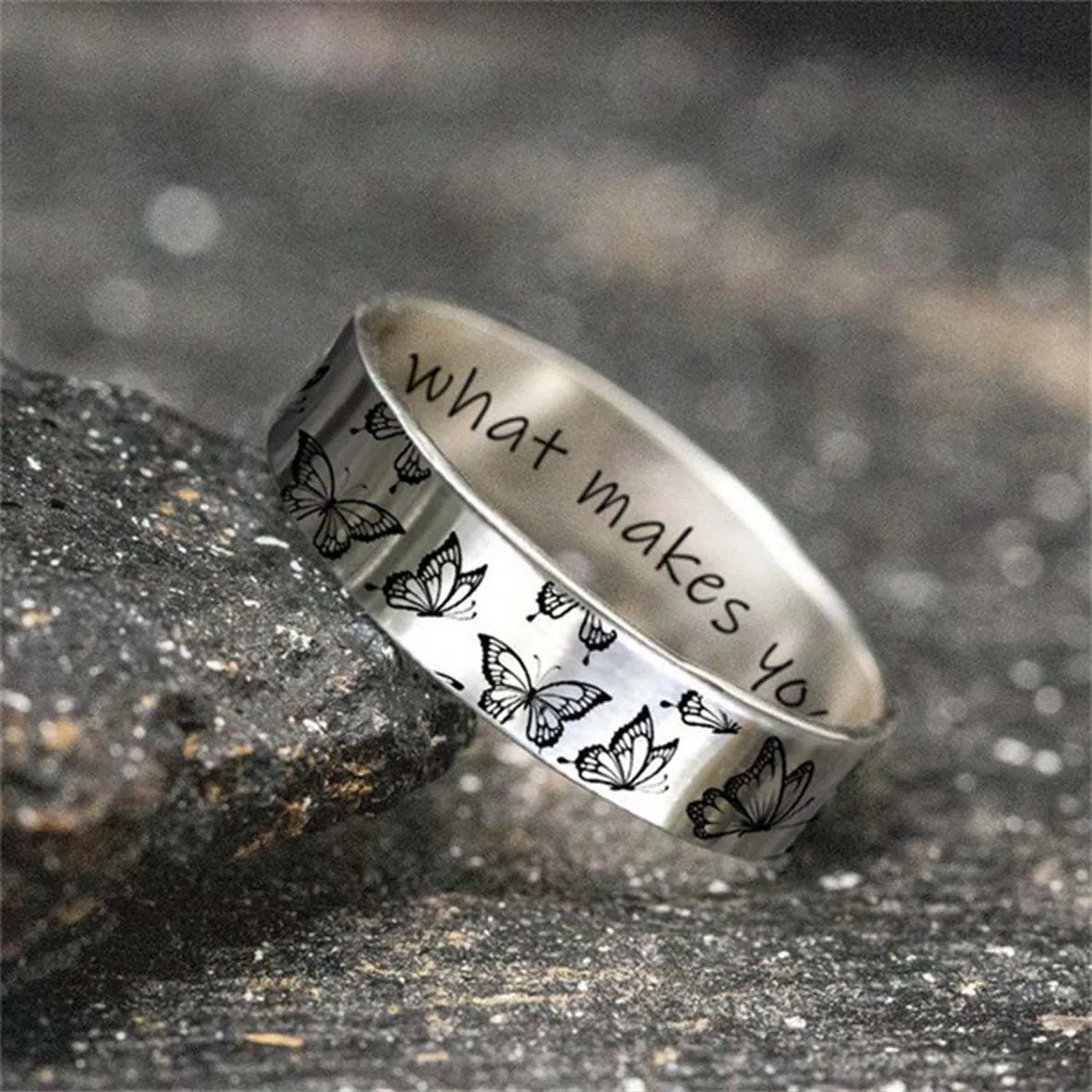 Цените маленькие вещи, кольцо с надписью, цветочным узором, бабочко...
