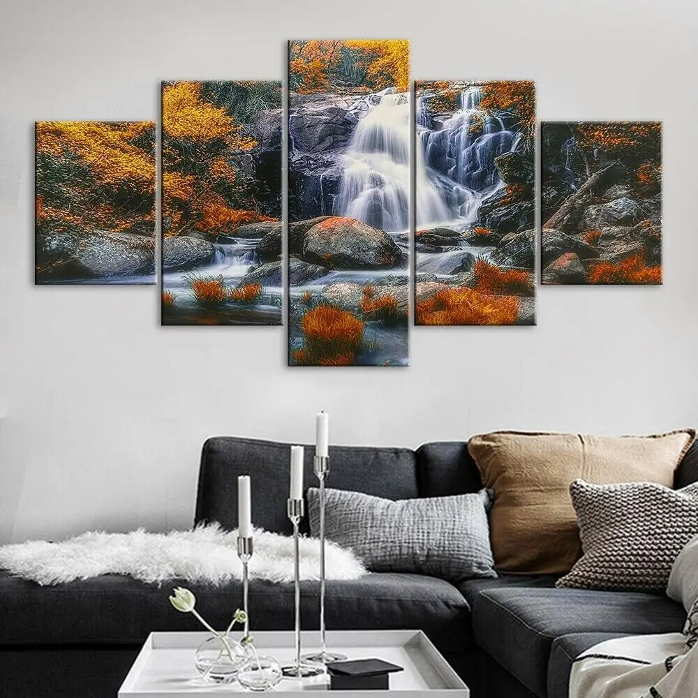 Картины модульные, 5 шт., без рамки, с красивым водопадом, для домашнего декора, картины на холсте, печатные плакаты, настенные картины для гостиной