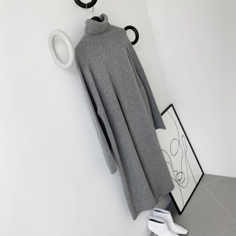 Корейский шикарный пуловер с высоким разрезом свитер для женщин Водолазка с длинным рукавом свободный длинный вязаный джемпер Топы свитер платья для женщин