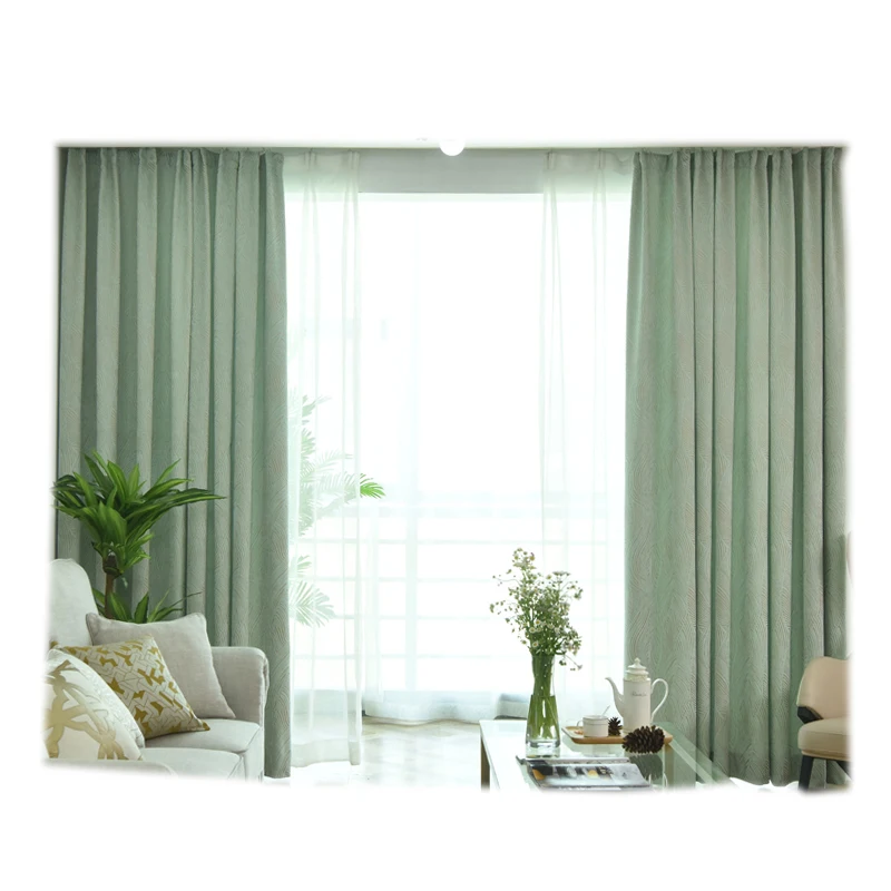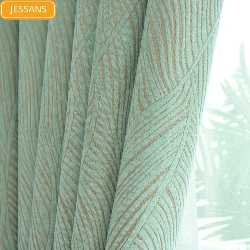 Простые шенильные занавески для гостиной, столовой, спальни, светильник-зеленые затемненные свежие и модные шторы