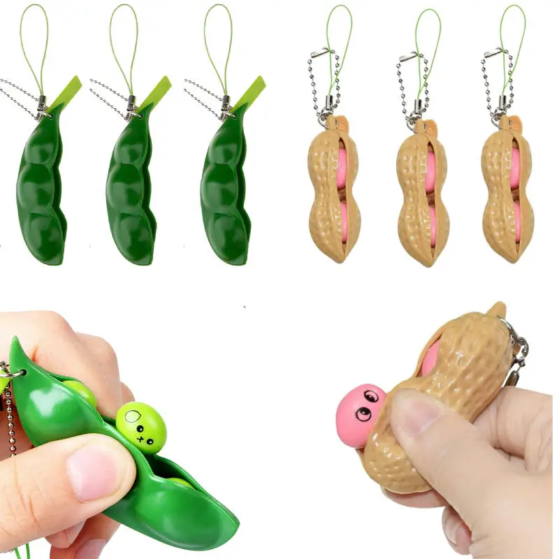 1 шт. забавные сжимаемые бобы Сжимаемый горох брелок для украшения ...